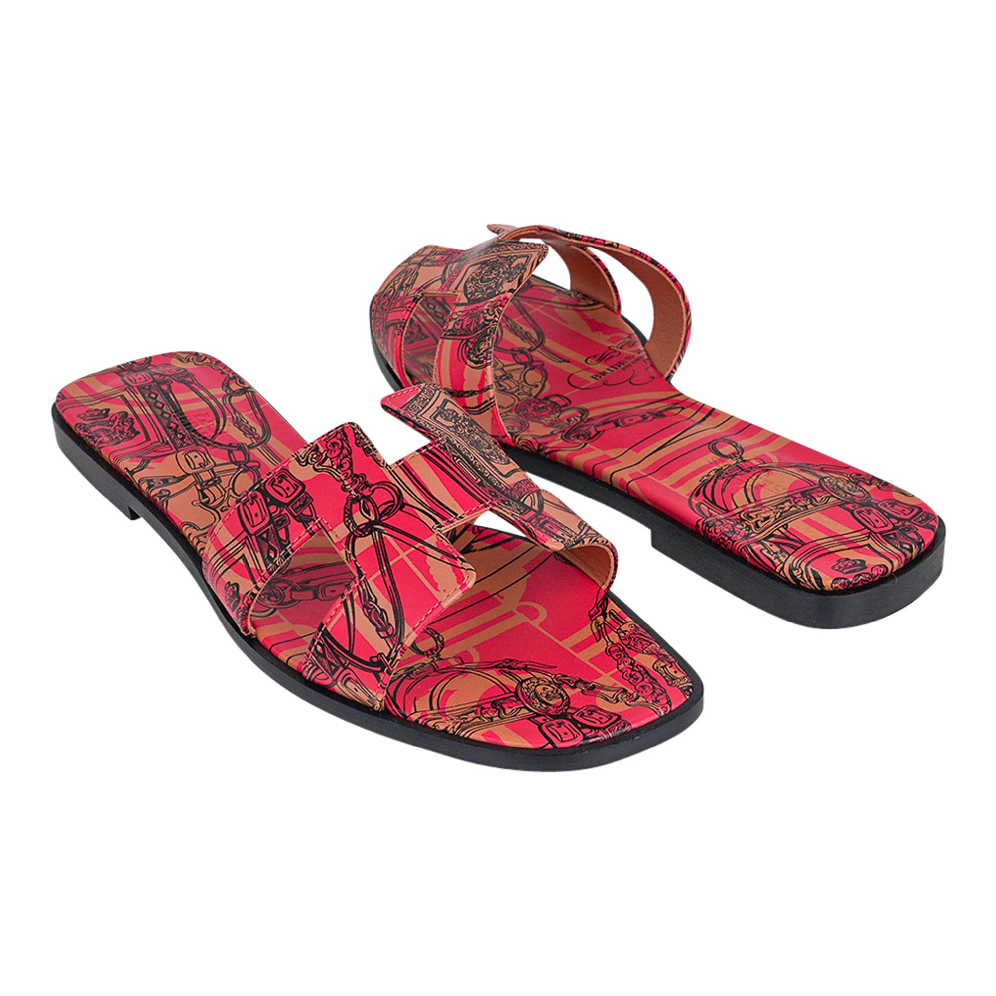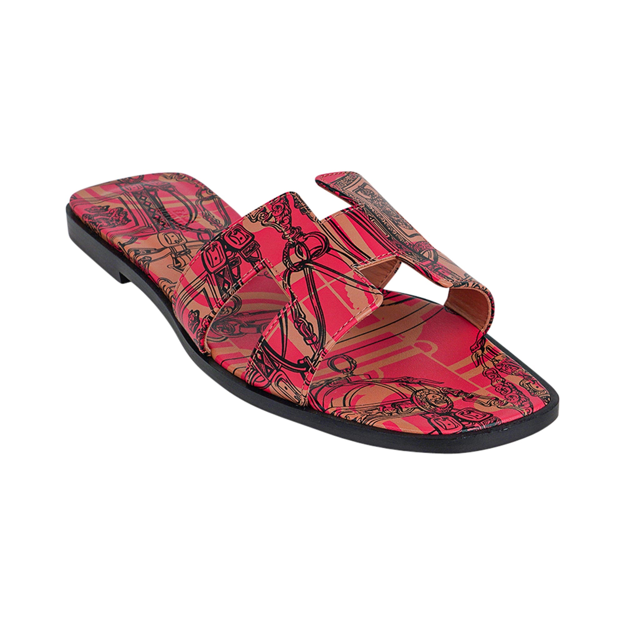 Limited edition printed calfskin featured in Rose Aube Multicolor, this Hermes Oran sandal is foot flirting perfection!