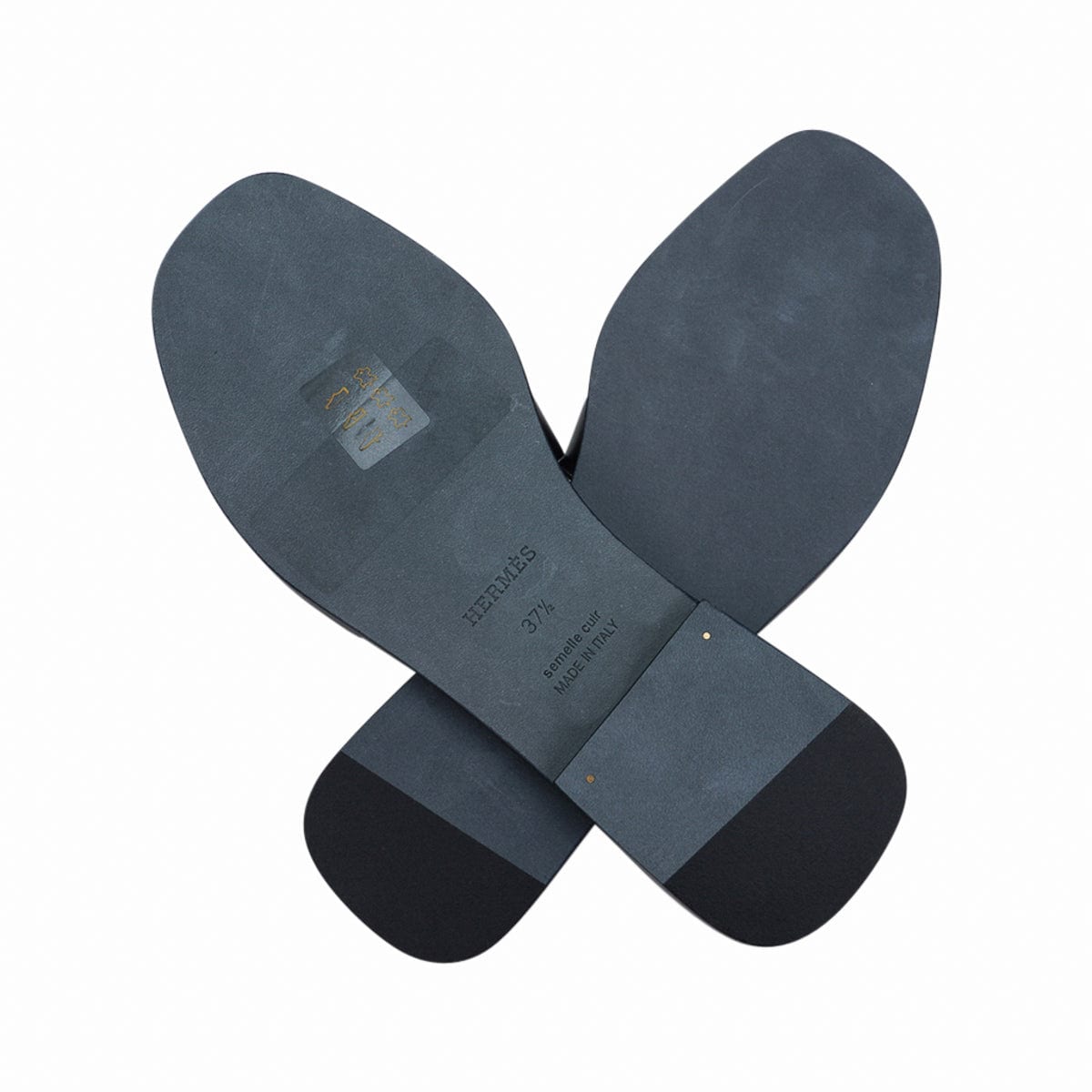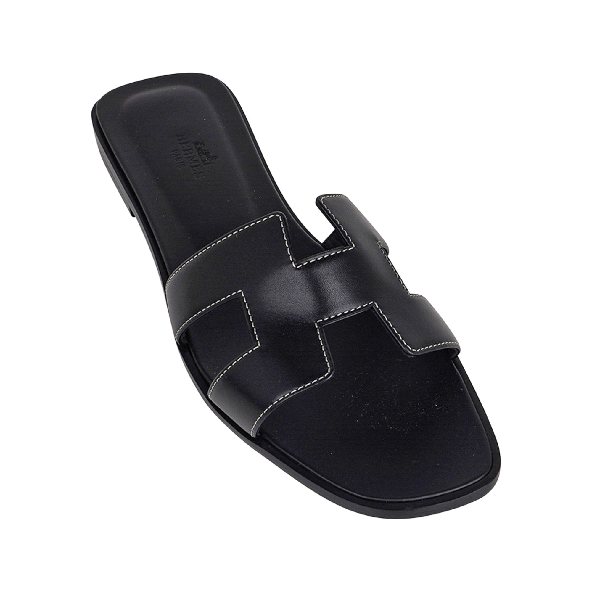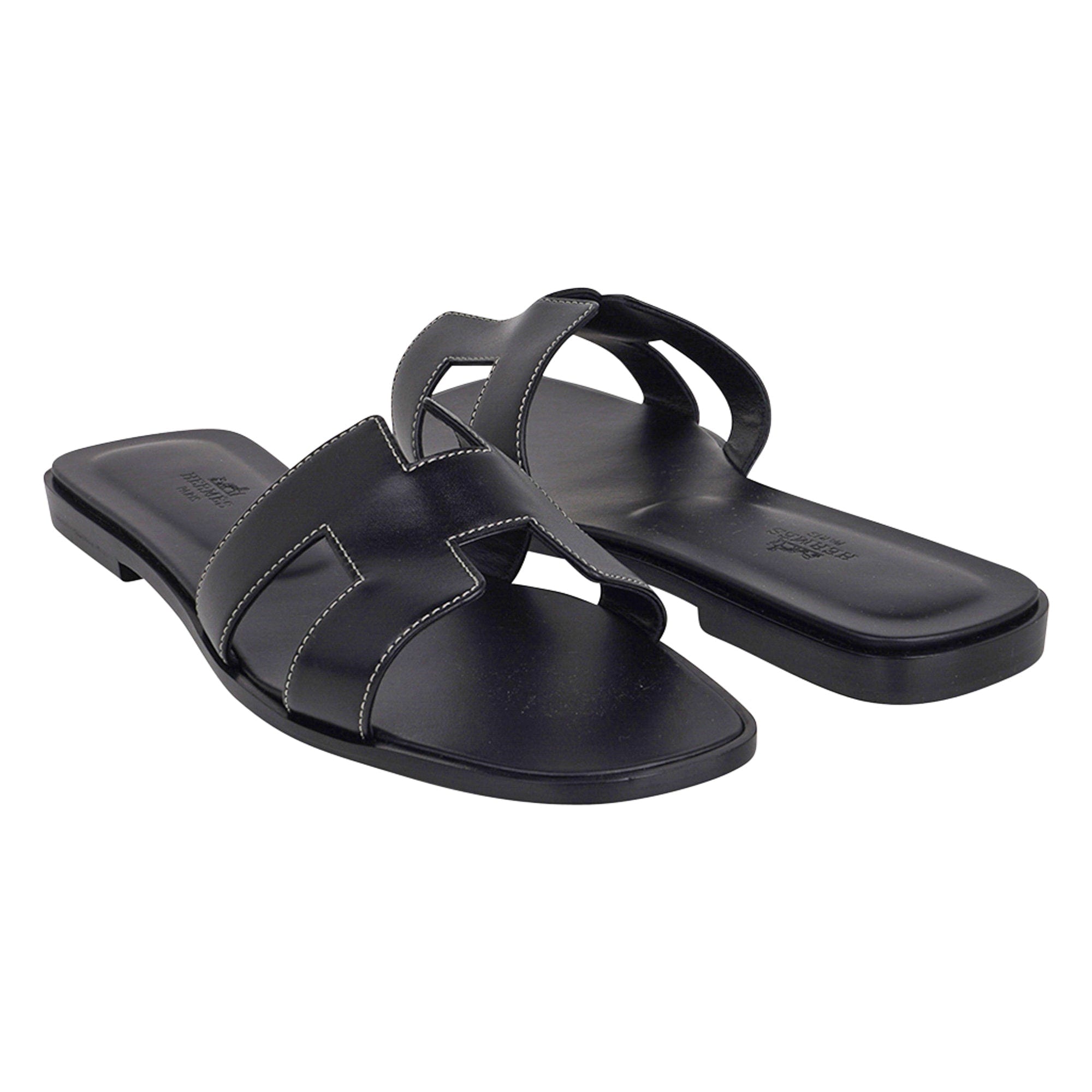 Guaranteed authentic Hermes Oran exquisite Black calfskin slide.