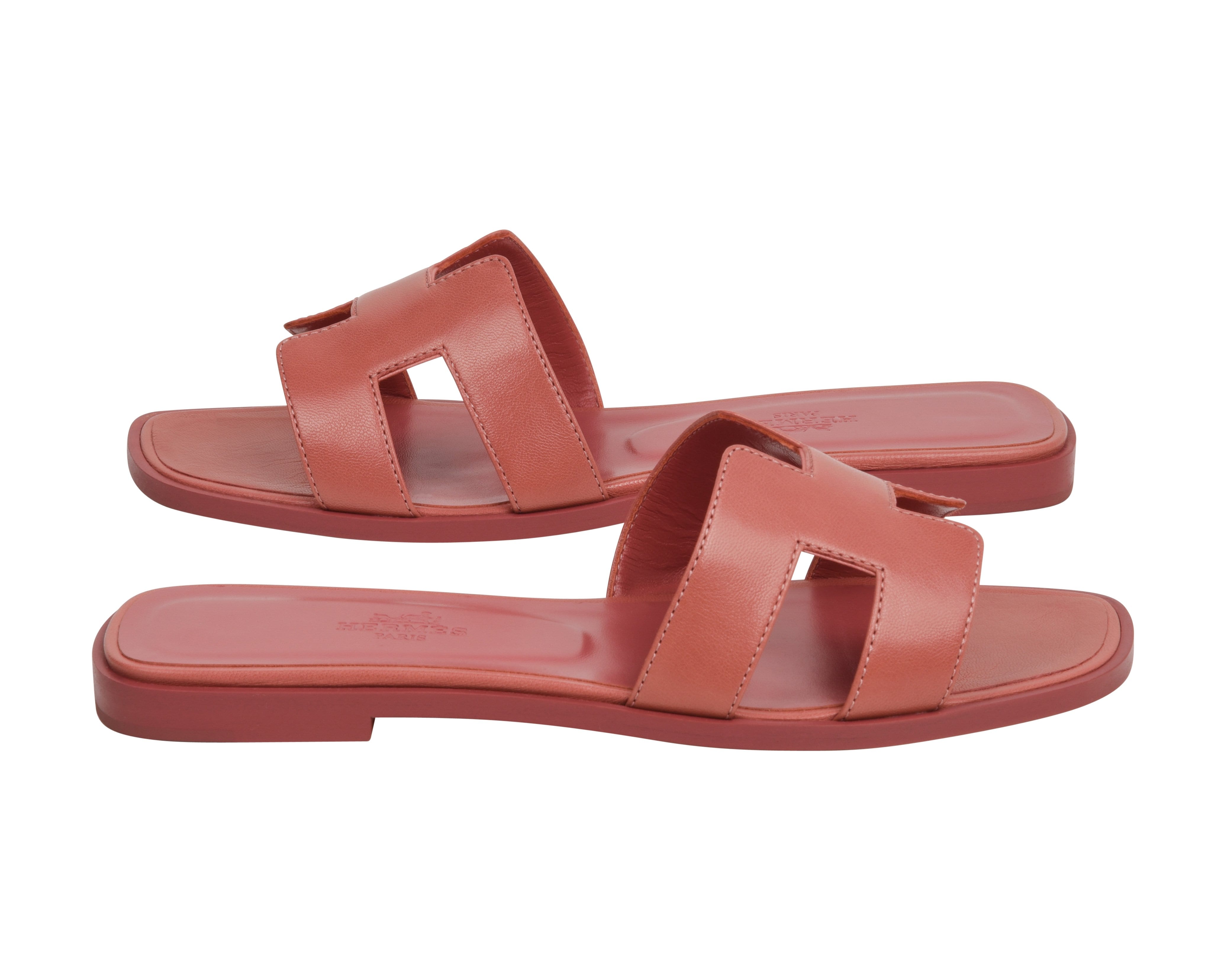 Limited Edition Hermes Oran exquisite rare to find Rouge Blush pink chevre leather slide.