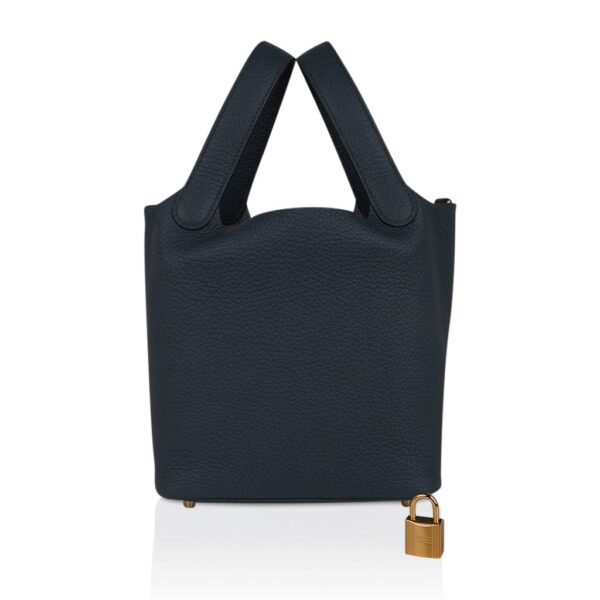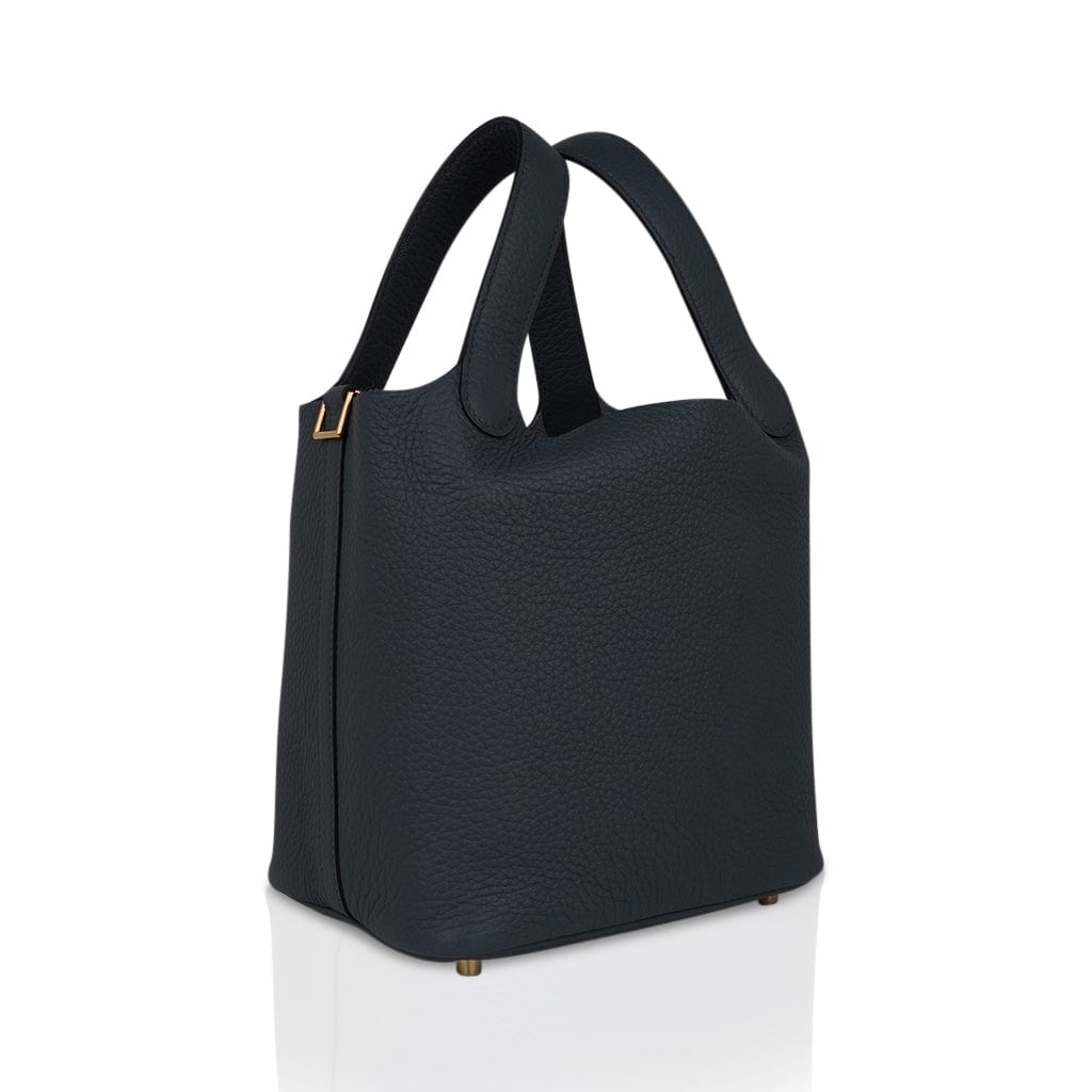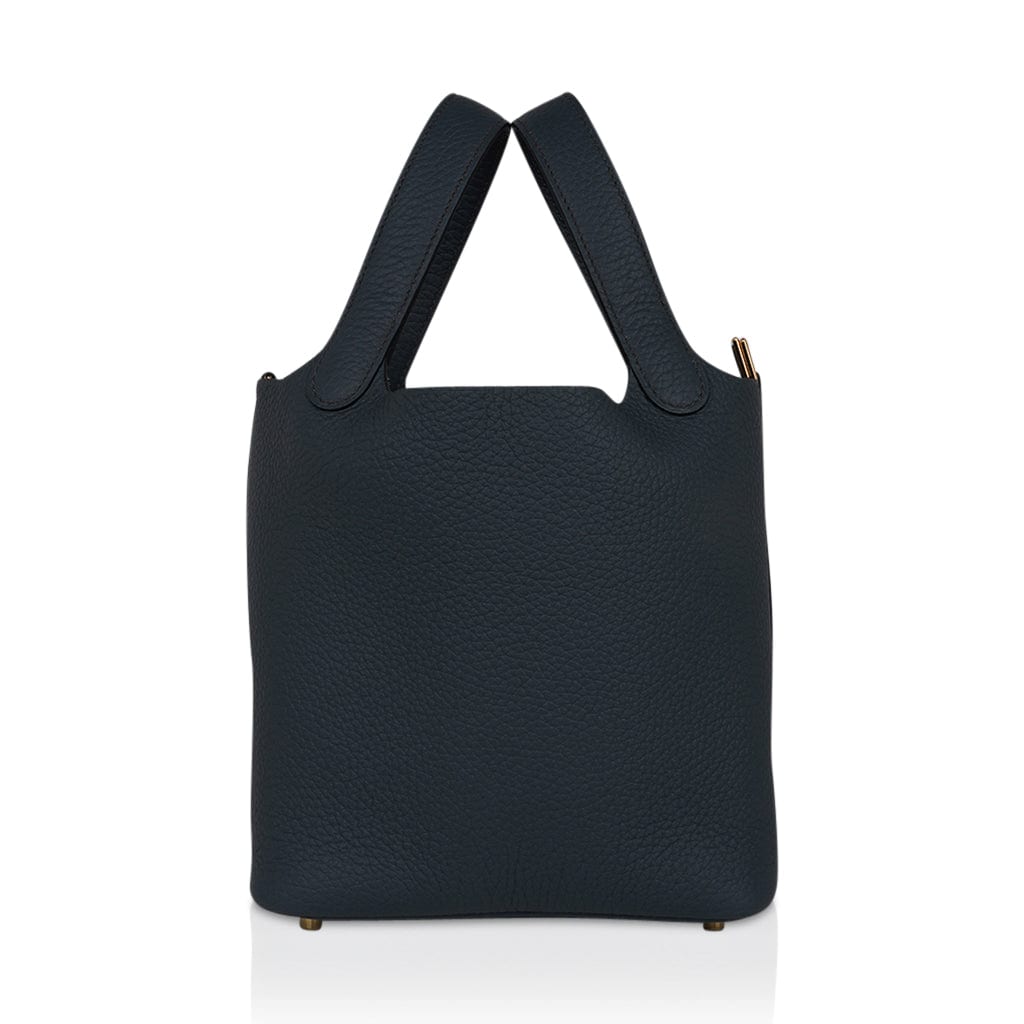 Guaranteed authentic Hermes Picotin Lock 18 tote bag featured in Blue Orage.