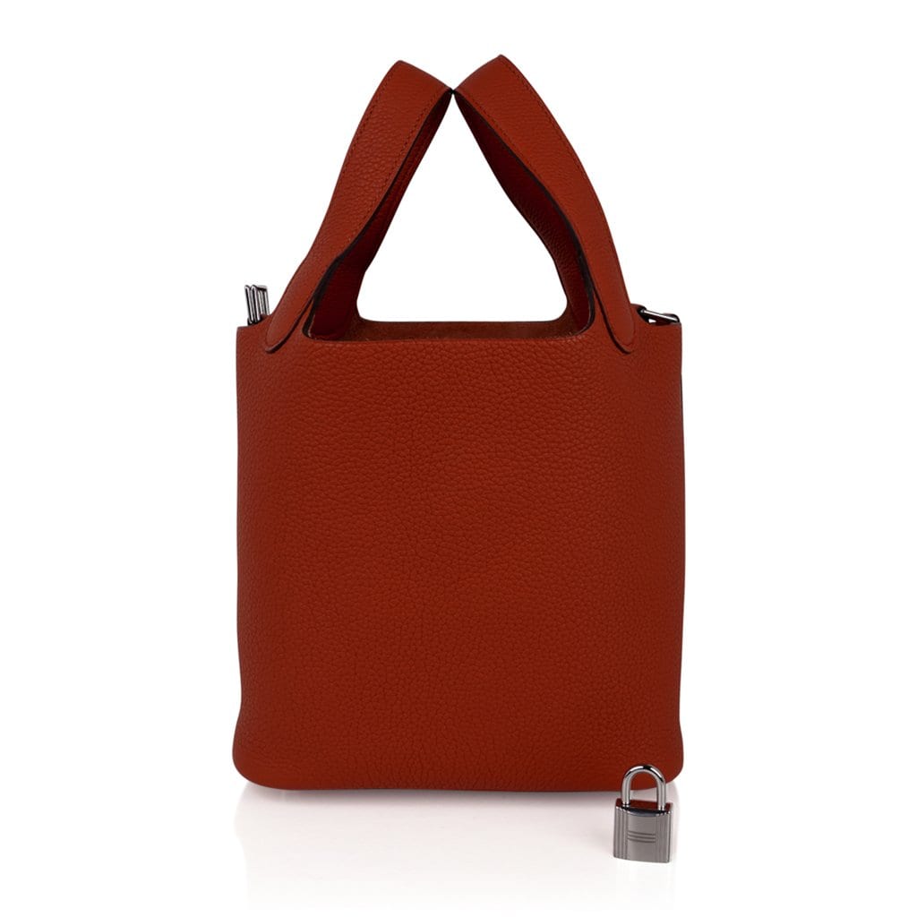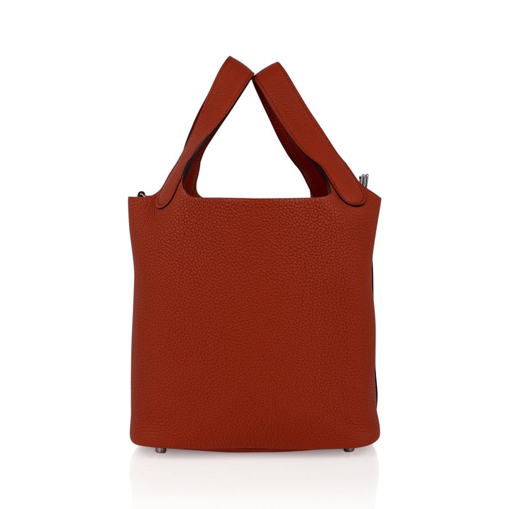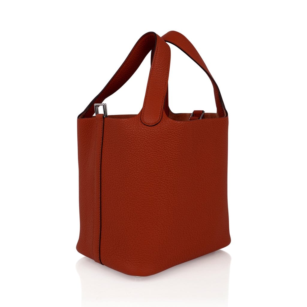 Guaranteed authentic Hermes Picotin Lock 18 tote bag featured in Cuivre.