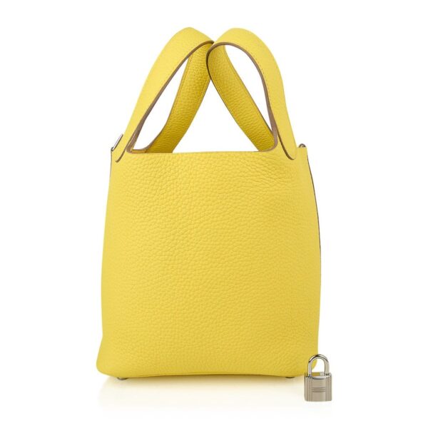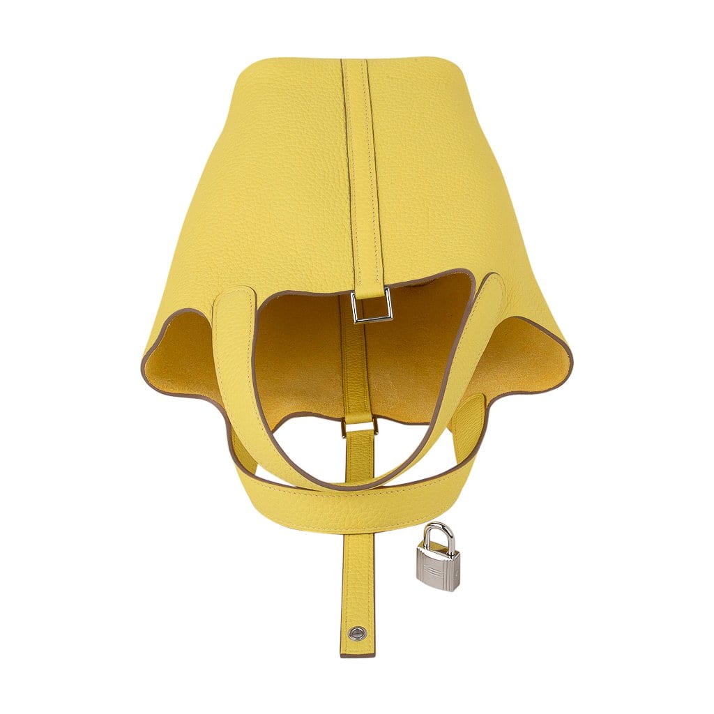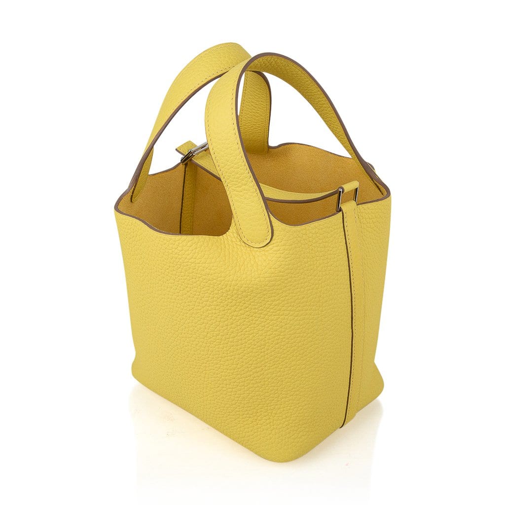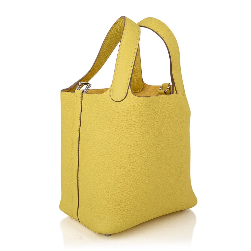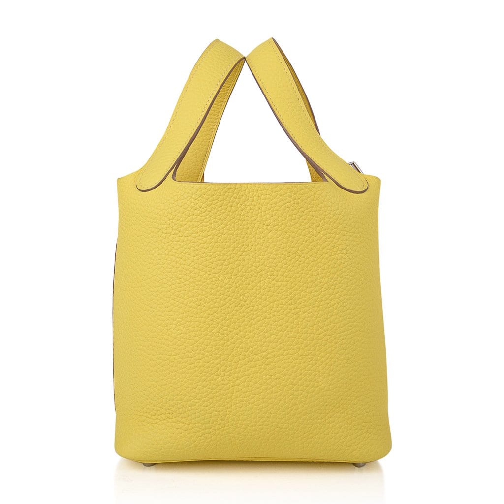 Guaranteed authentic Hermes Picotin Lock 18 tote bag featured in fresh vivid Lime.