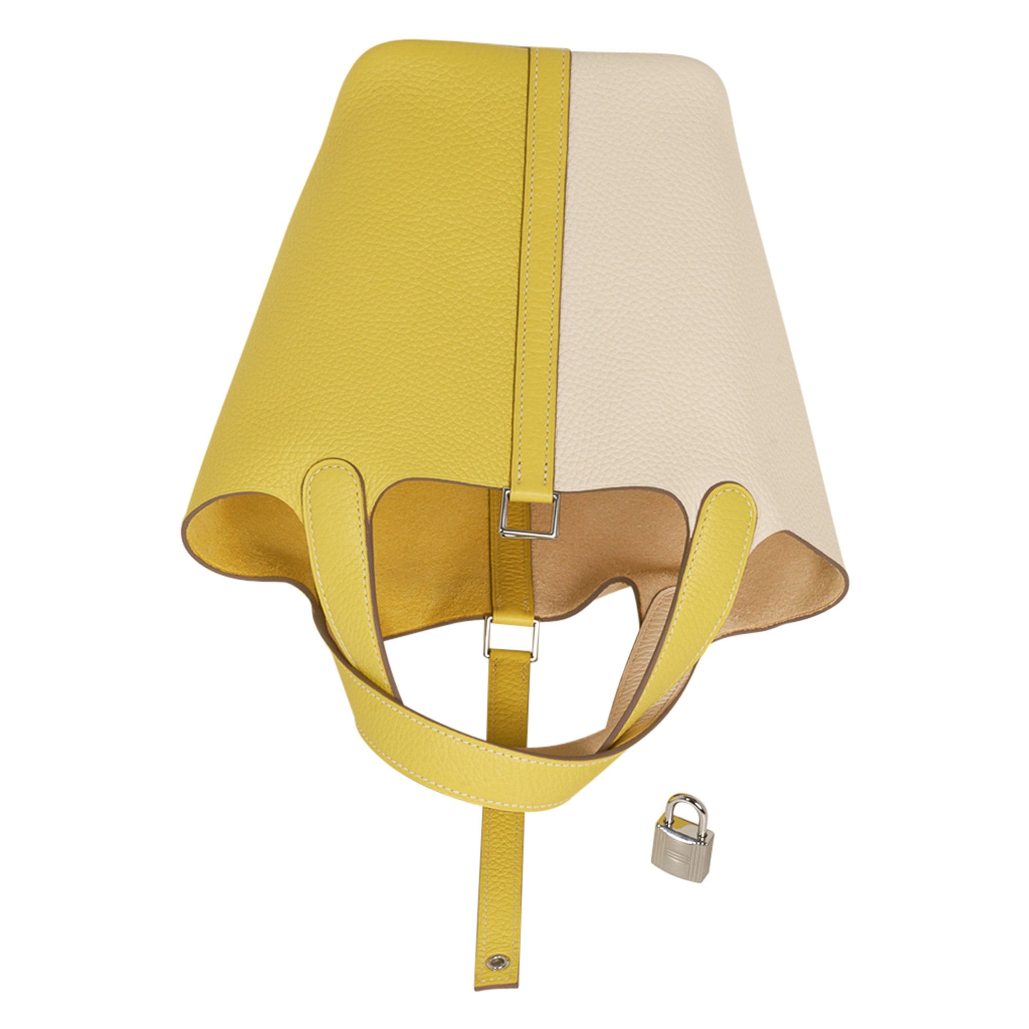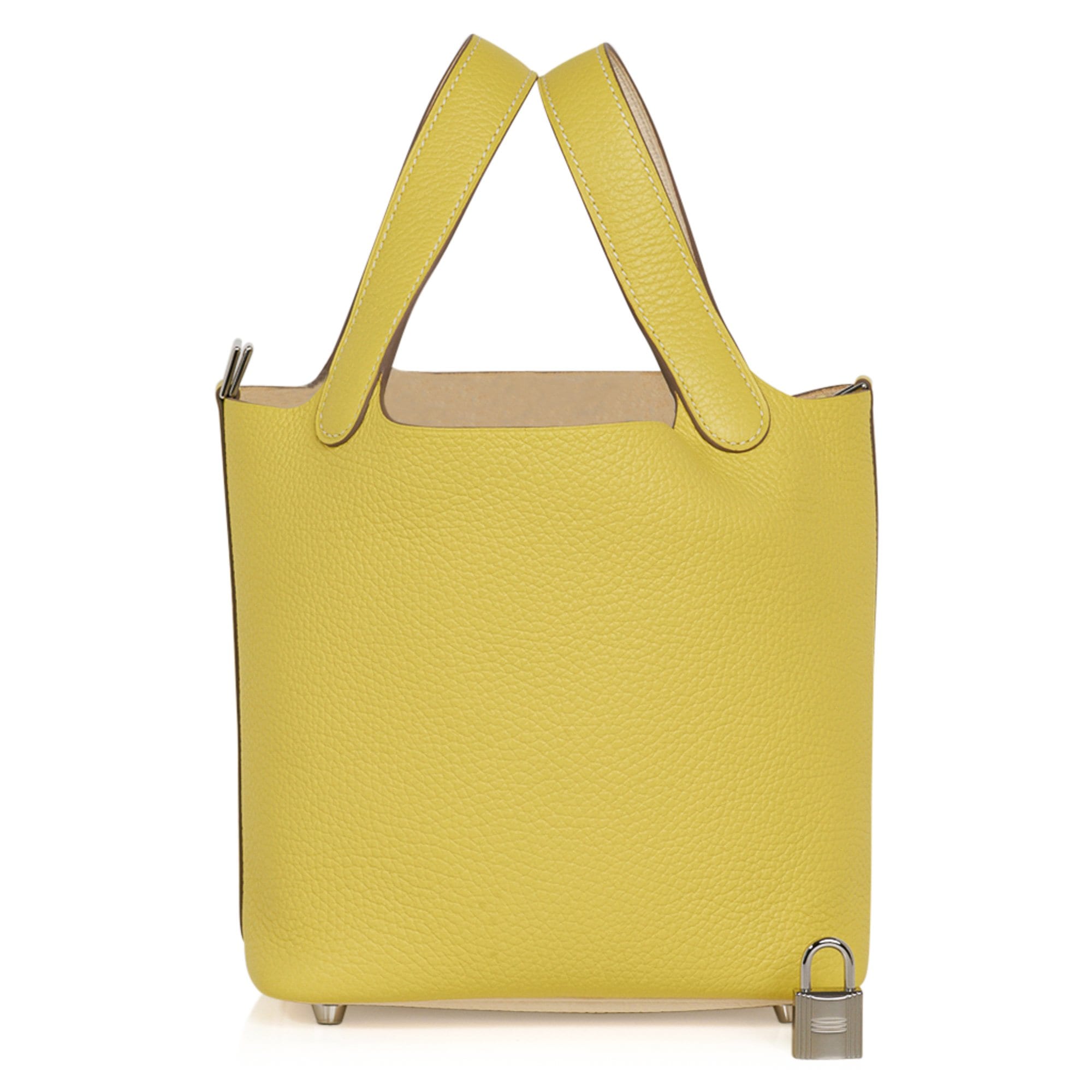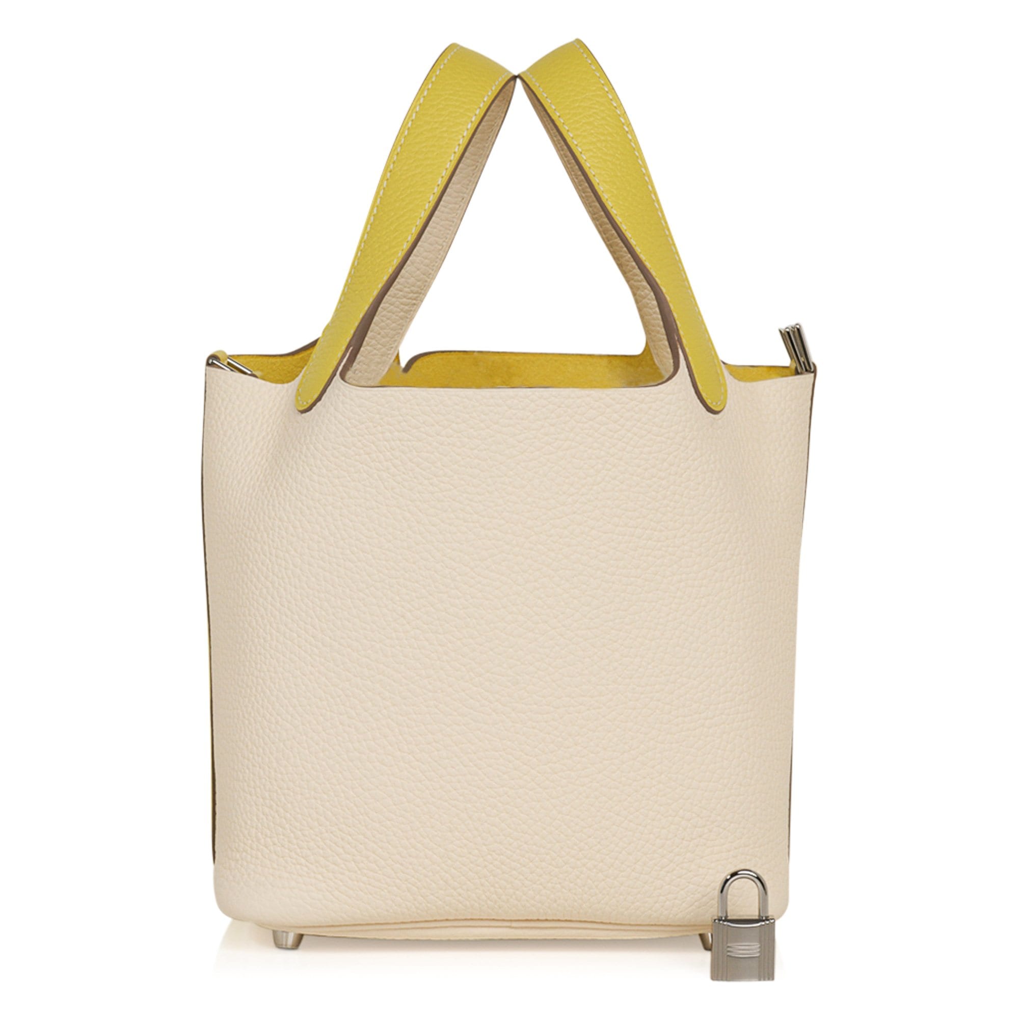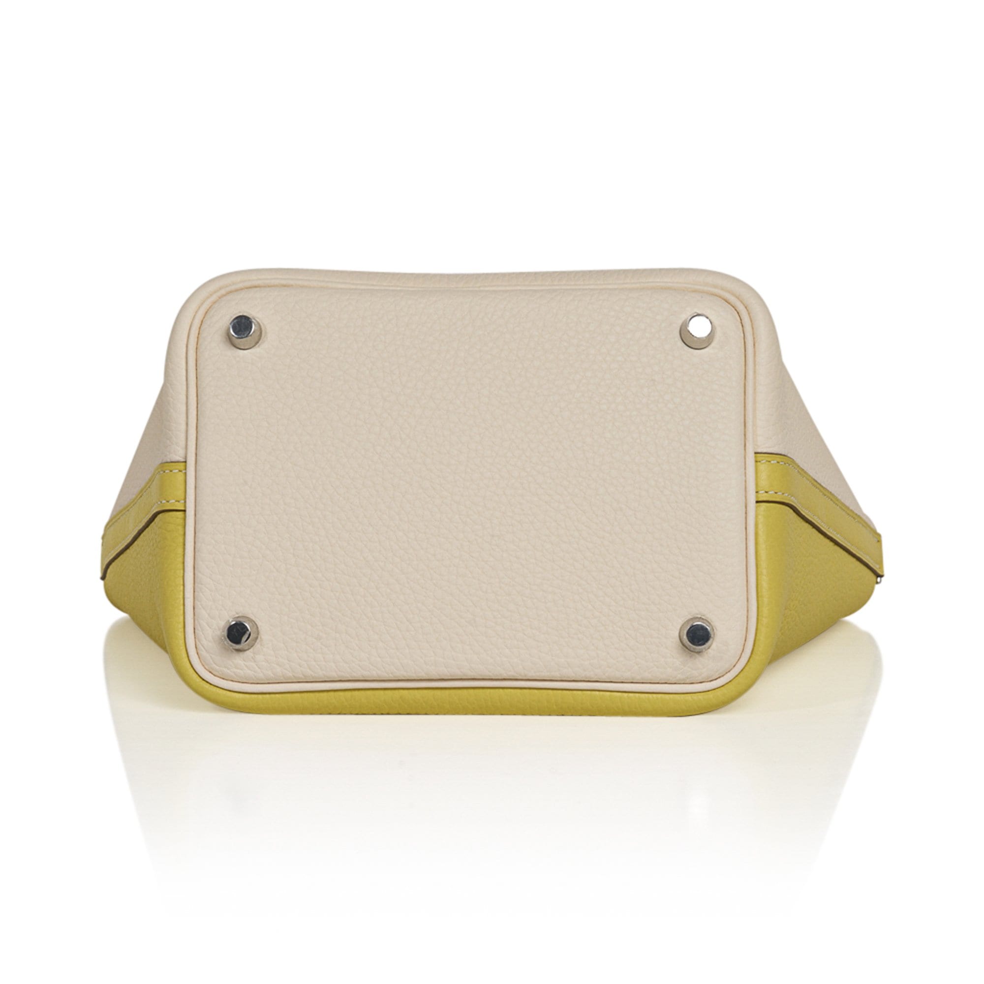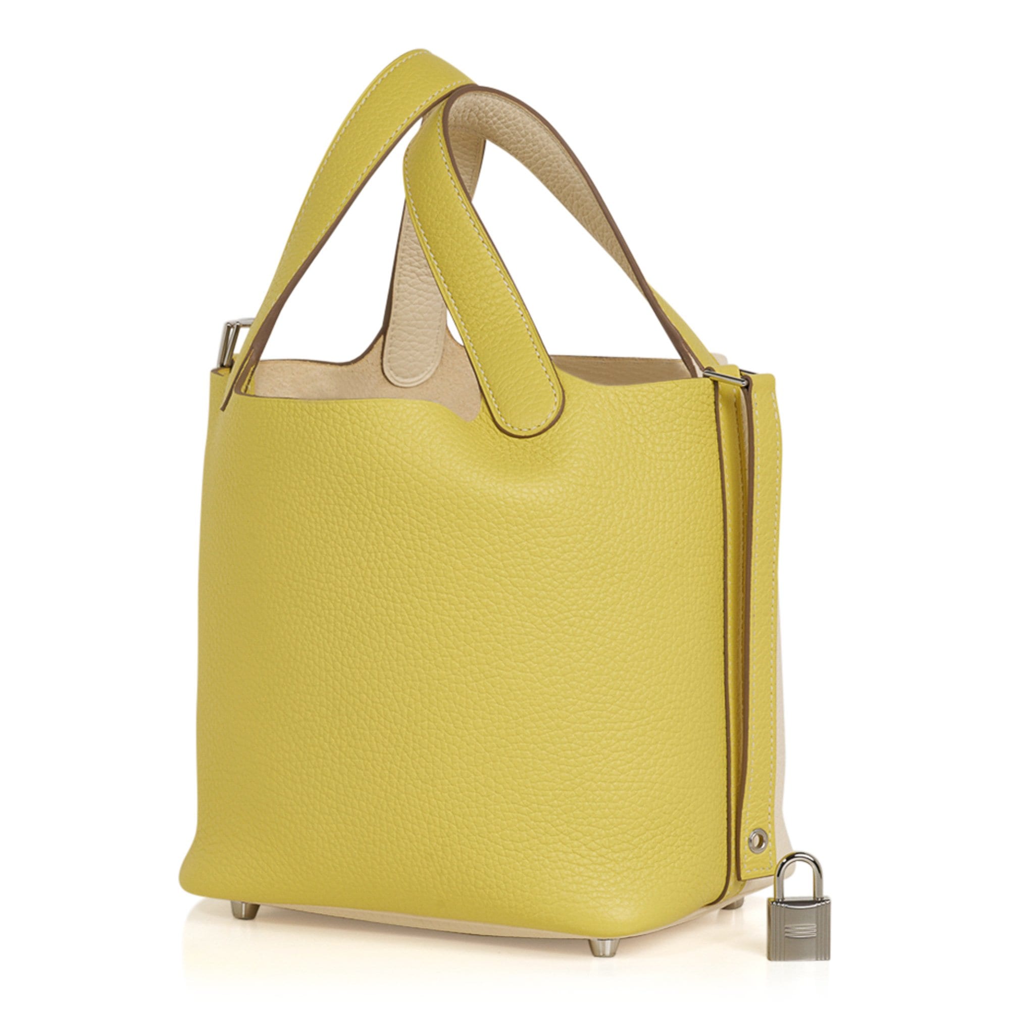 Guaranteed authentic Hermes Picotin Lock 18 Casaque bag featured in Lime / Nata.