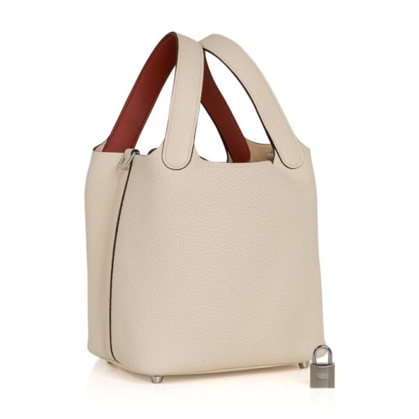 Guaranteed authentic Hermes Picotin Eclat Lock 18 tote bag in Nata / Battue.