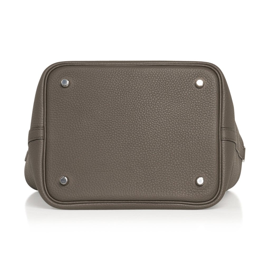 Guaranteed authentic Hermes Picotin Lock 22cm Etain in Clemence leather.