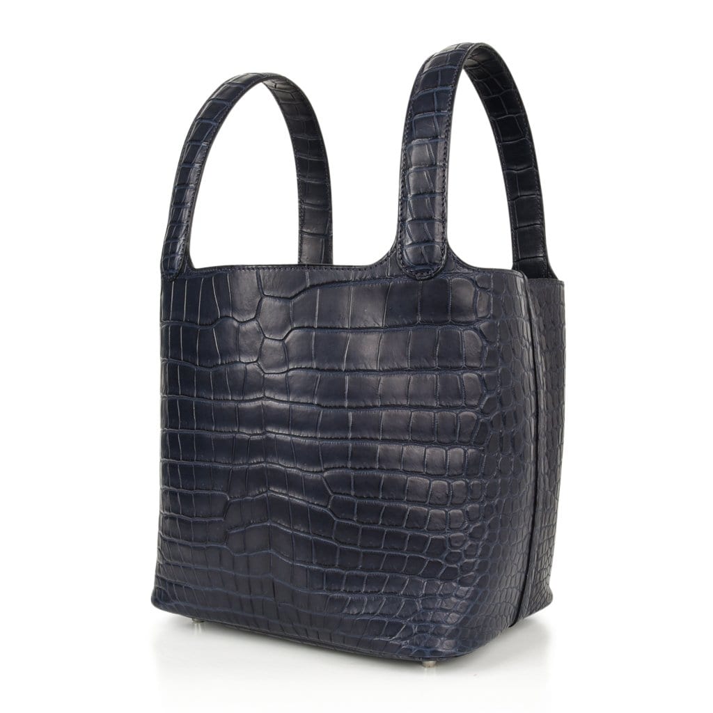 Hermes Picotin Lock 22 Blue Indigo Matte Porosus Crocodile Rare