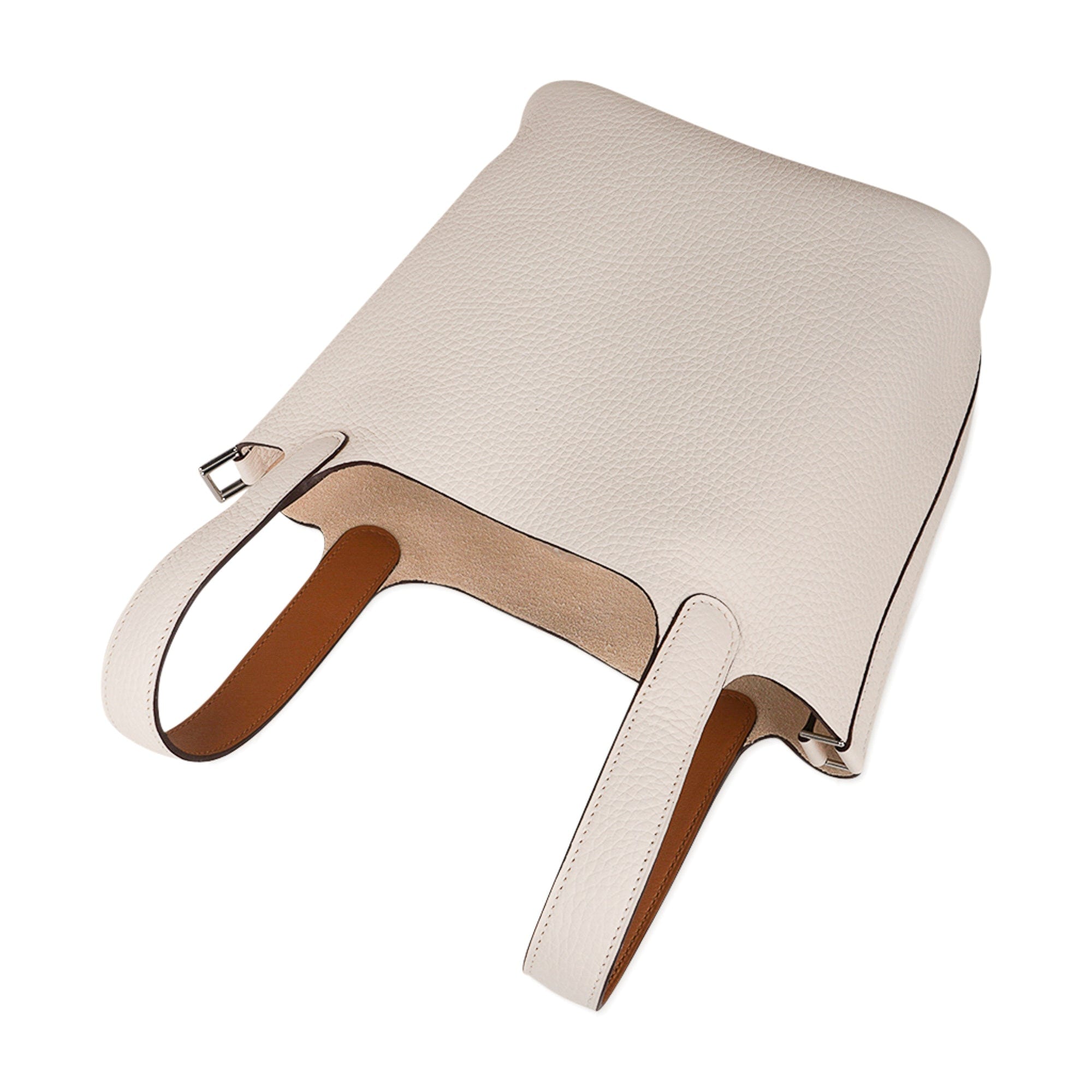 The bag is Nata, a beautiful chalk white, with the interior of the handles Sesame, a contrasting warm tone.