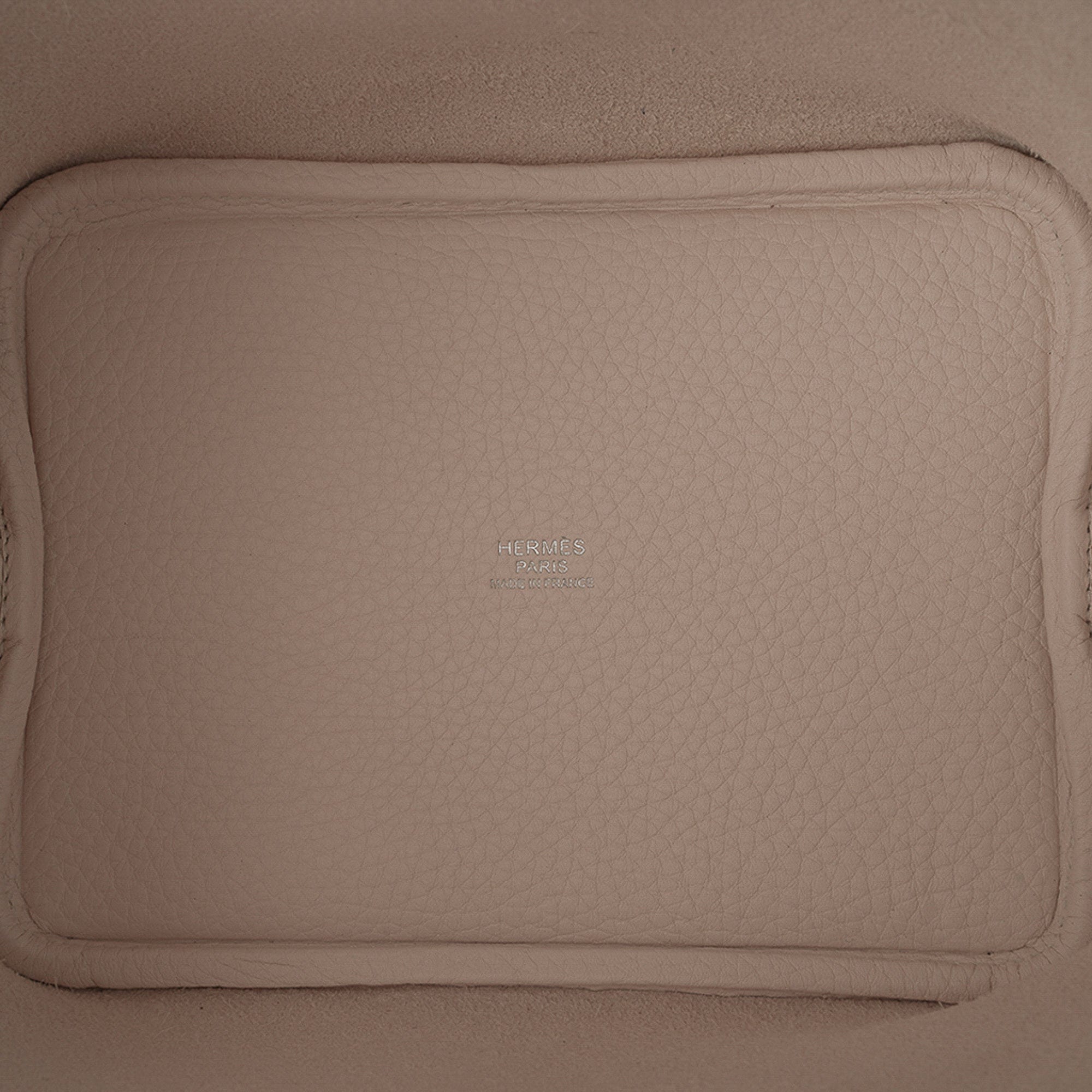 The body of the bag and exterior handle is Clemence leather with Palladium hardware.