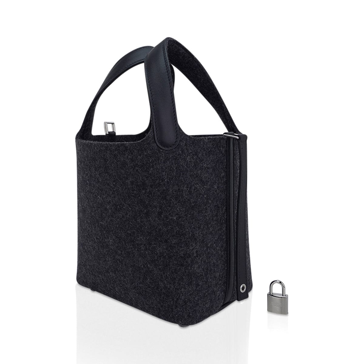 The body of the bag and exterior handles are Grey Feutre (Wool) with Palladium hardware.