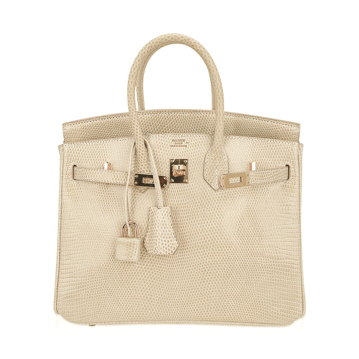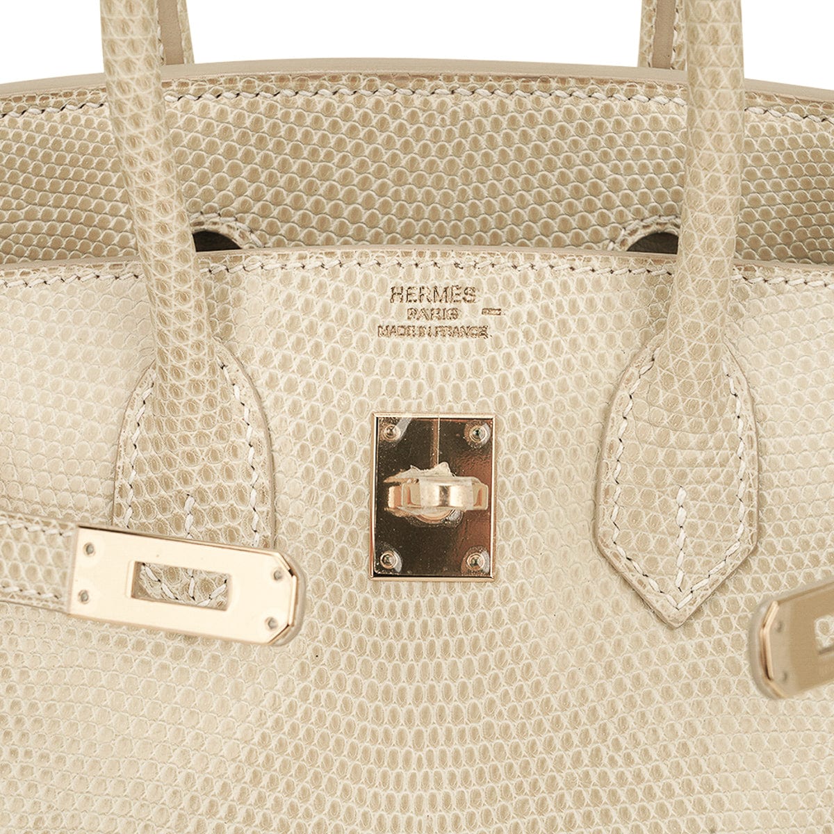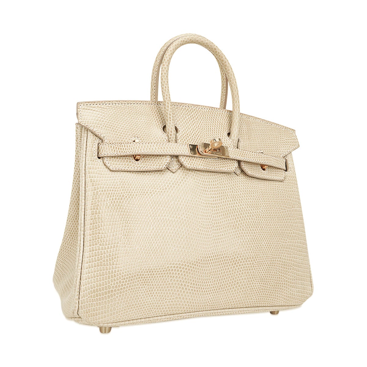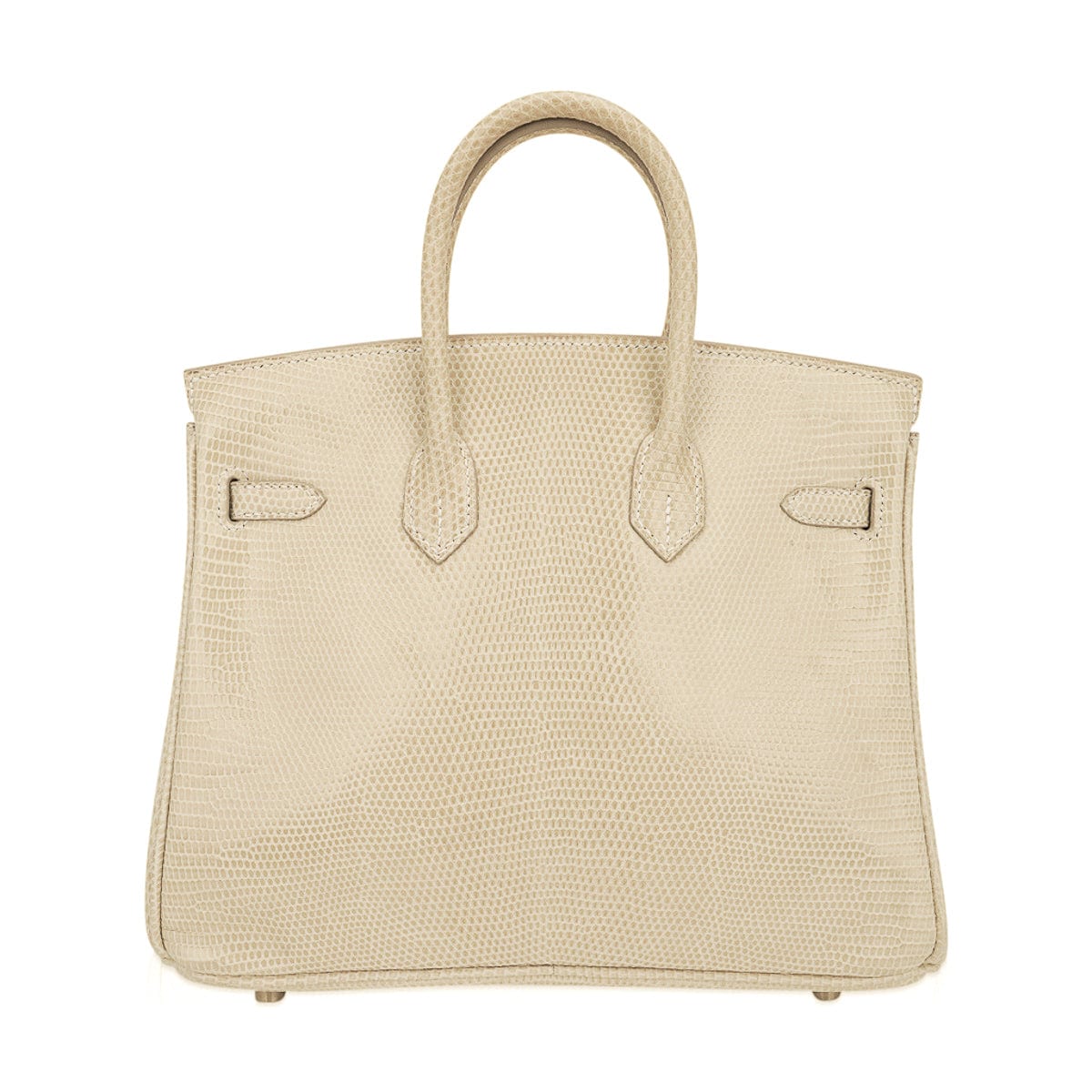 Guaranteed authentic Hermes Birkin 25 bag featured in very rare Blanc Casse lizard.