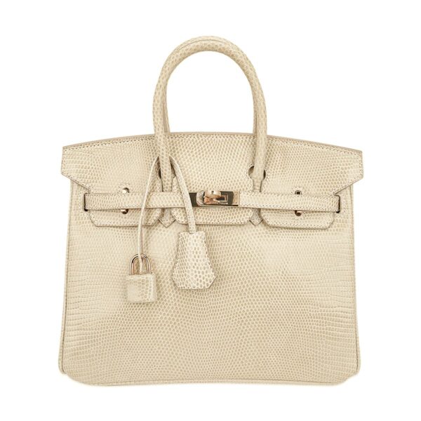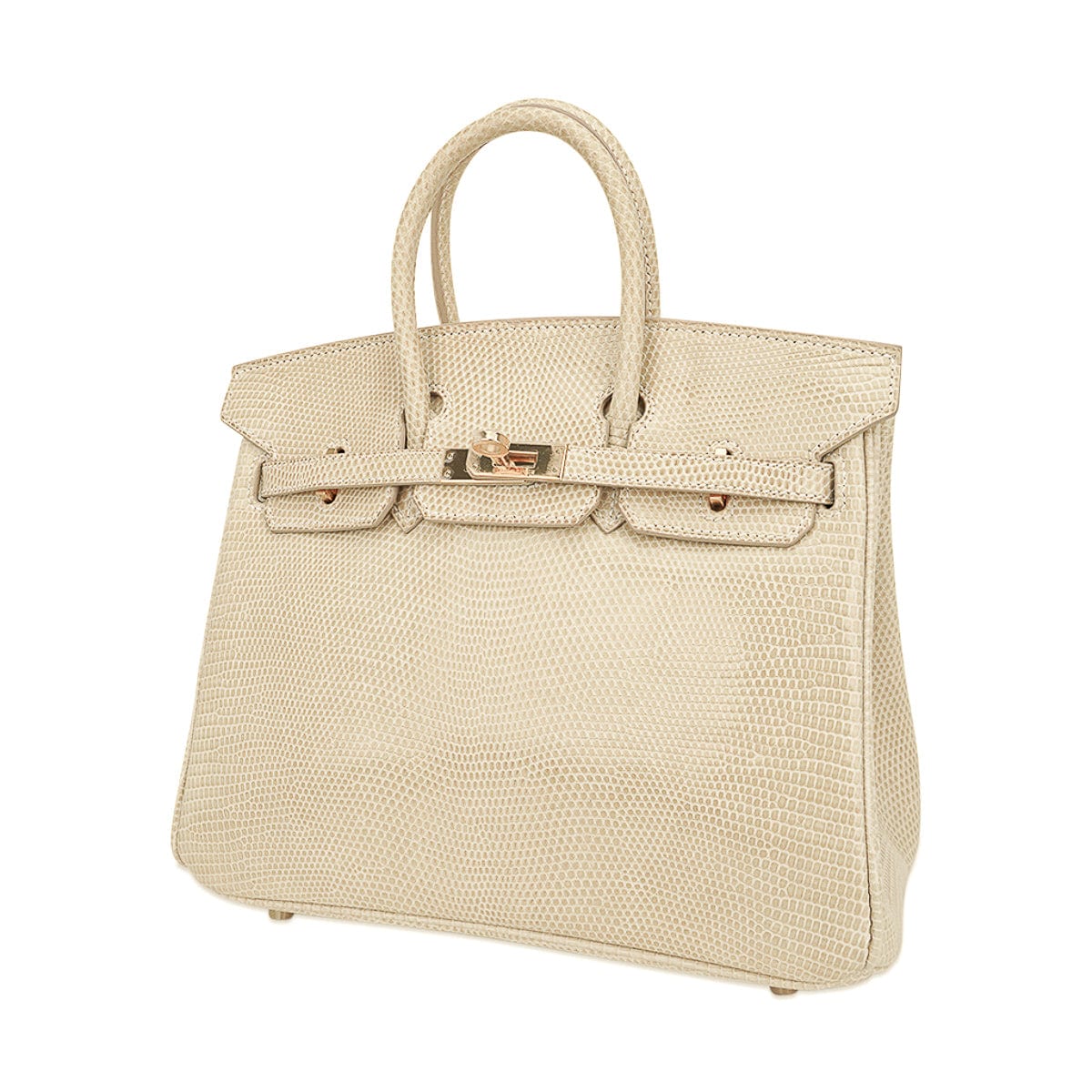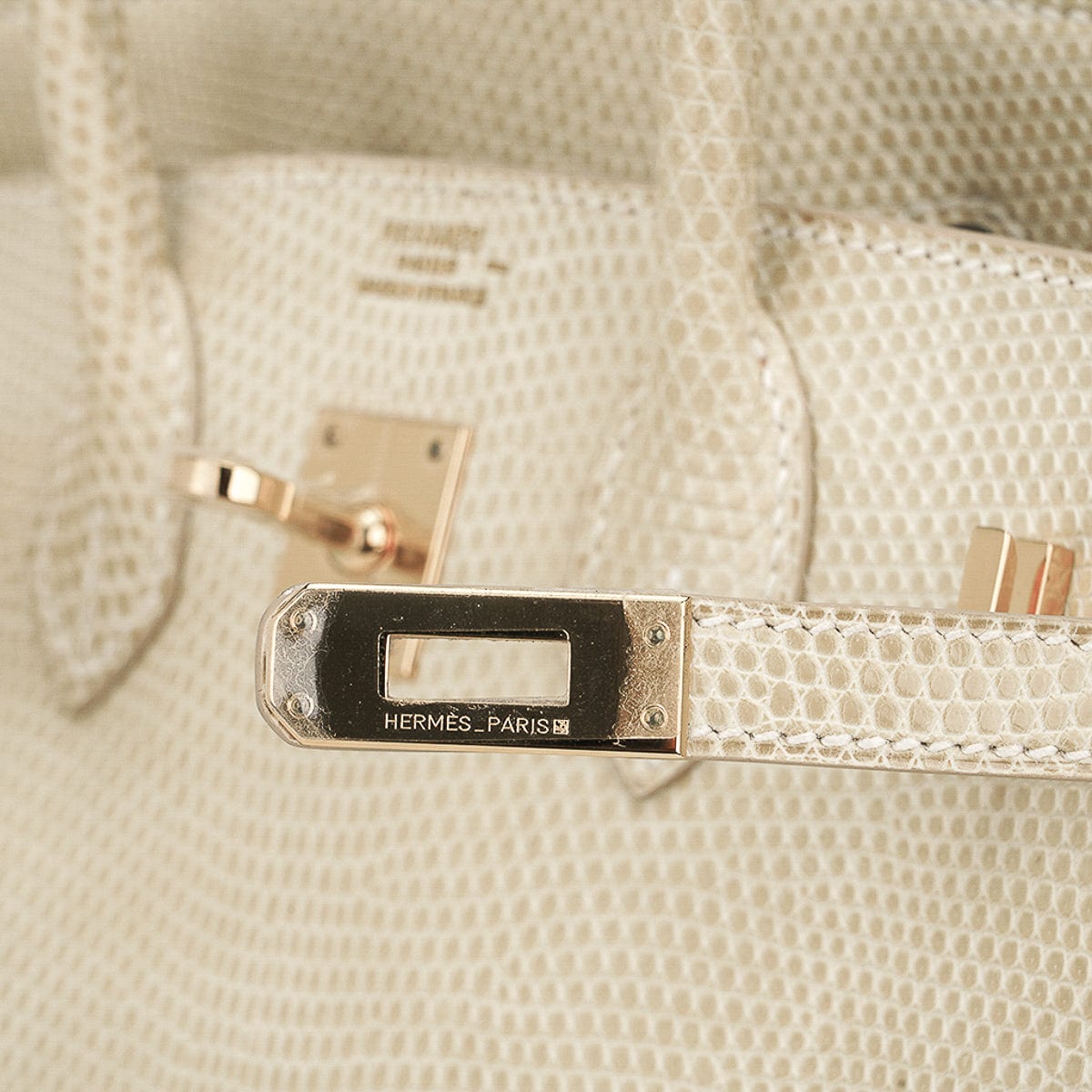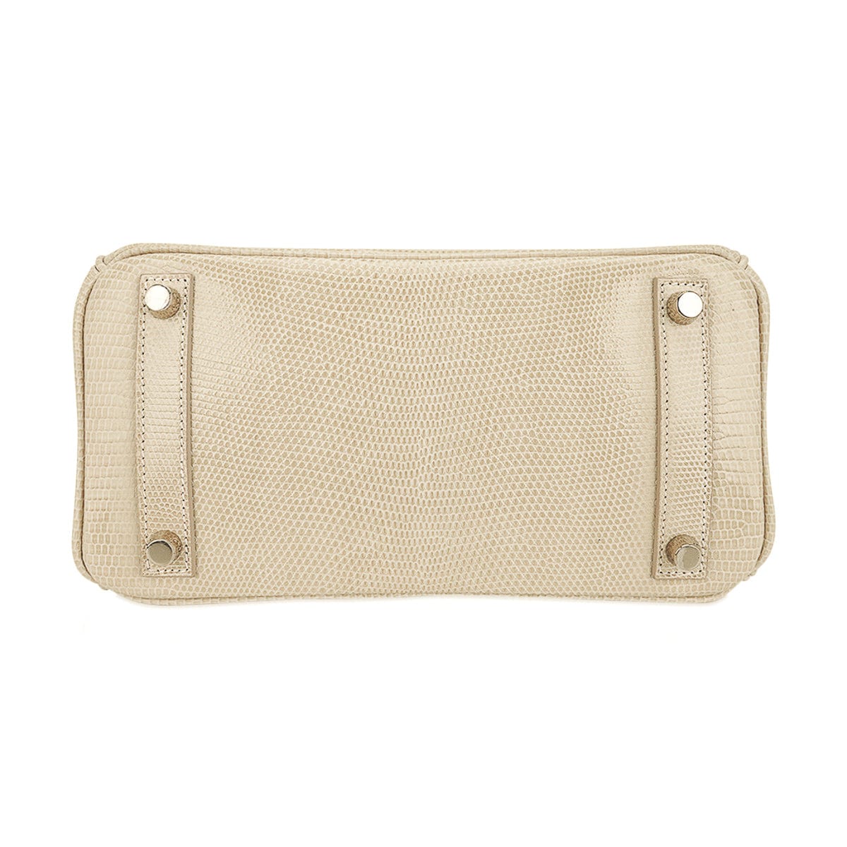 Guaranteed authentic Hermes Birkin 25 bag featured in very rare Blanc Casse lizard.