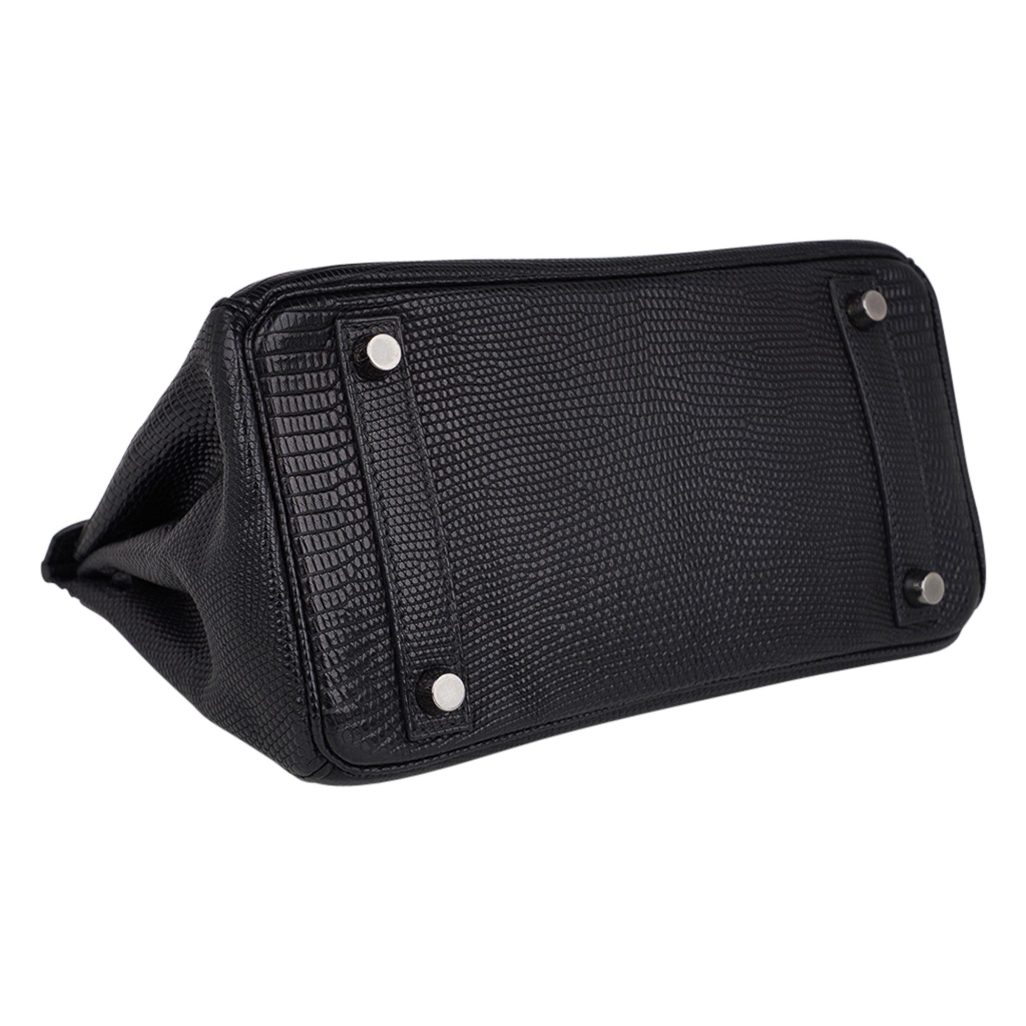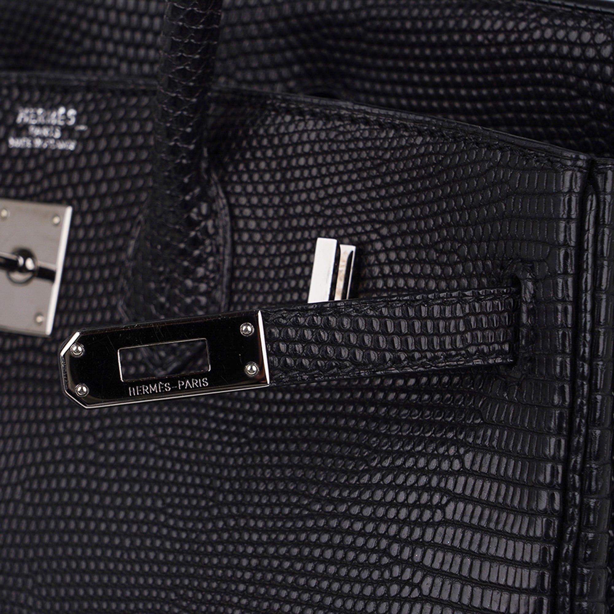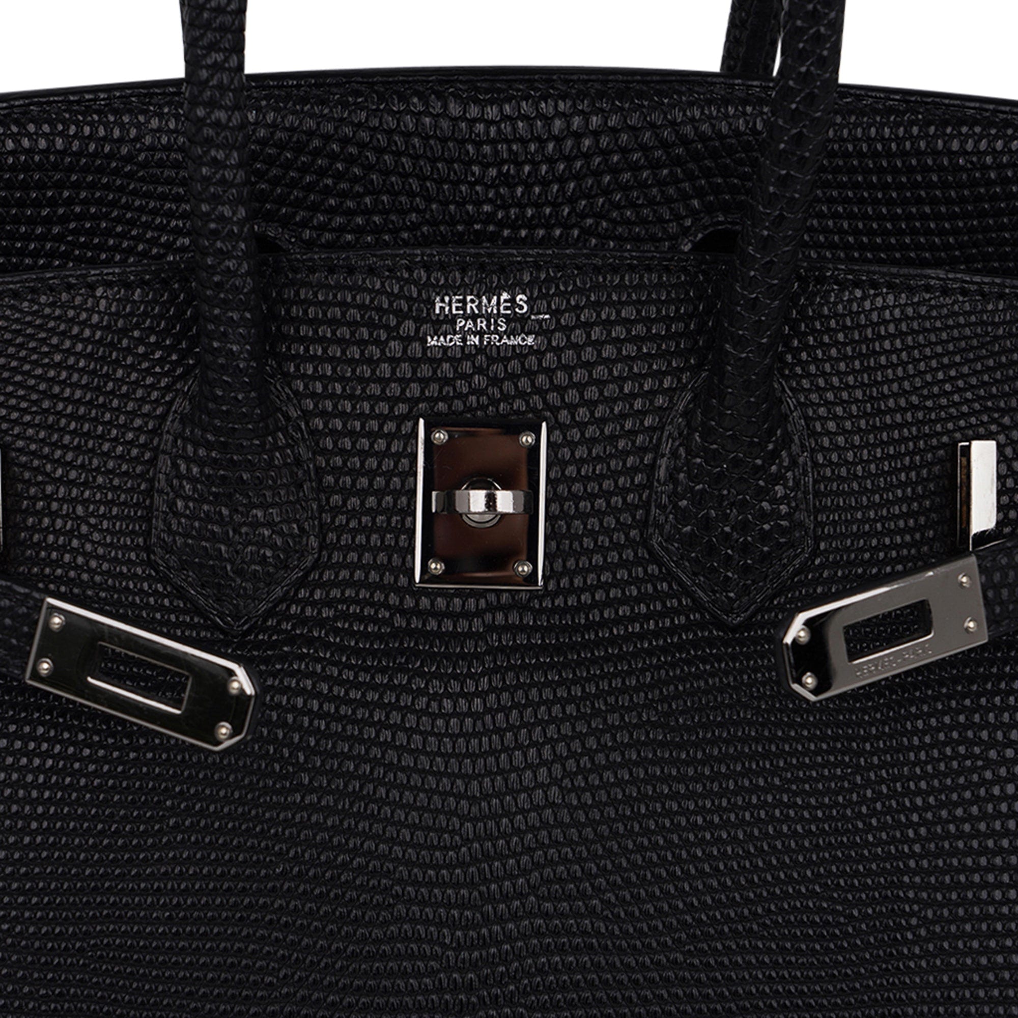 Guaranteed authentic Hermes Birkin 25 bag featured in Matte Black Varanus Salvator Lizard.