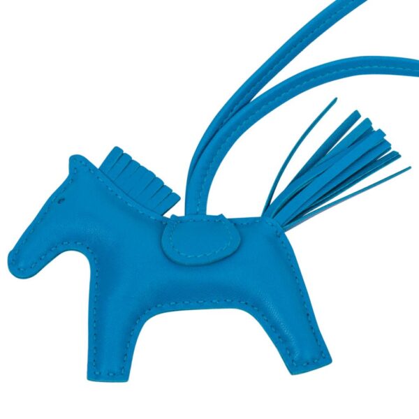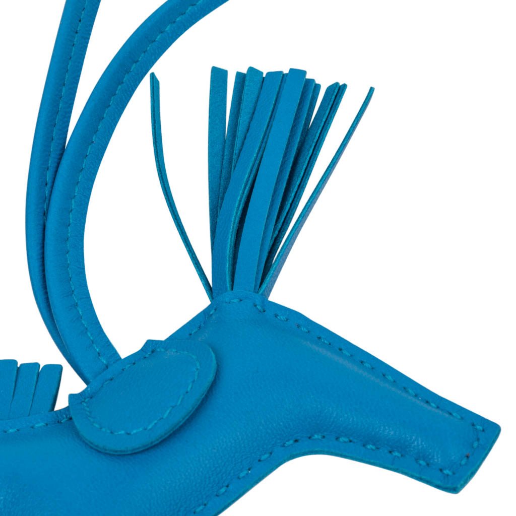 Guaranteed authentic coveted Hermes PM Rodeo bag charm features solid Blue Zanzibar.