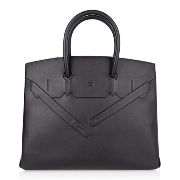 Guaranteed authentic coveted and rare Limited Edition Shadow Birkin 35 bag featured in Black Swift Leather.