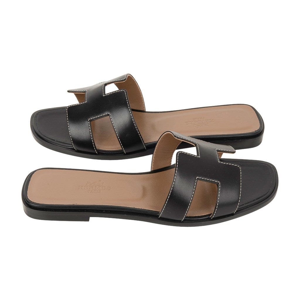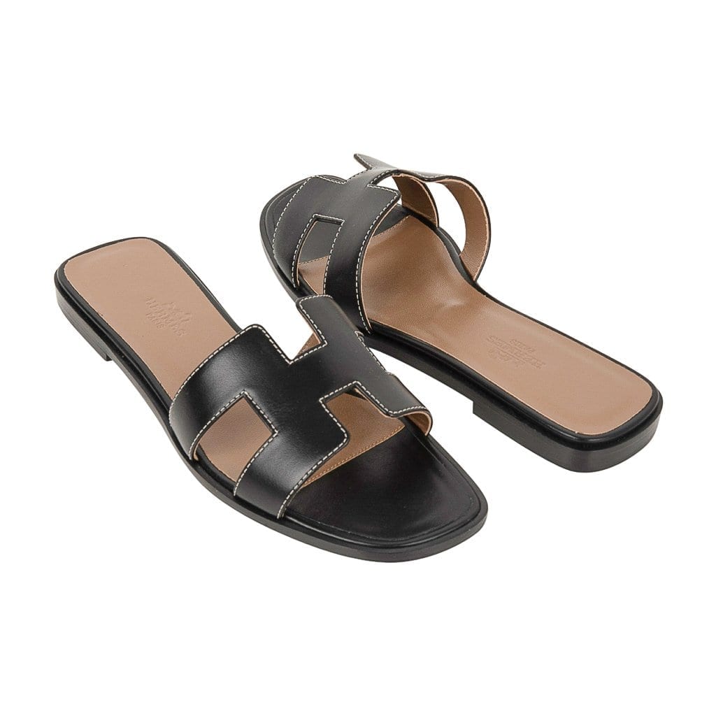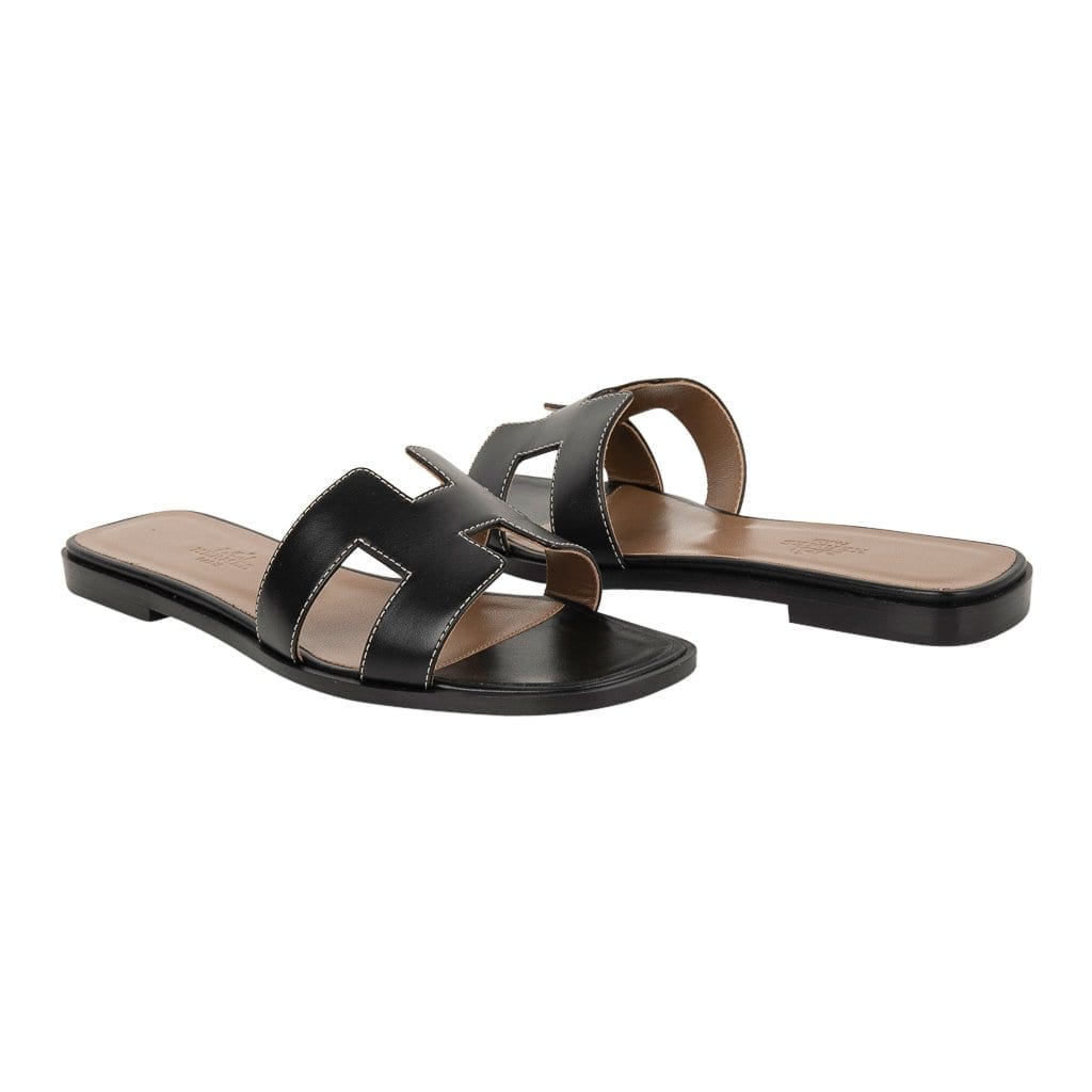 Experience elevated simplicity with the Hermès Oran Black Sandal, where comfort meets refined craftsmanship in every step.