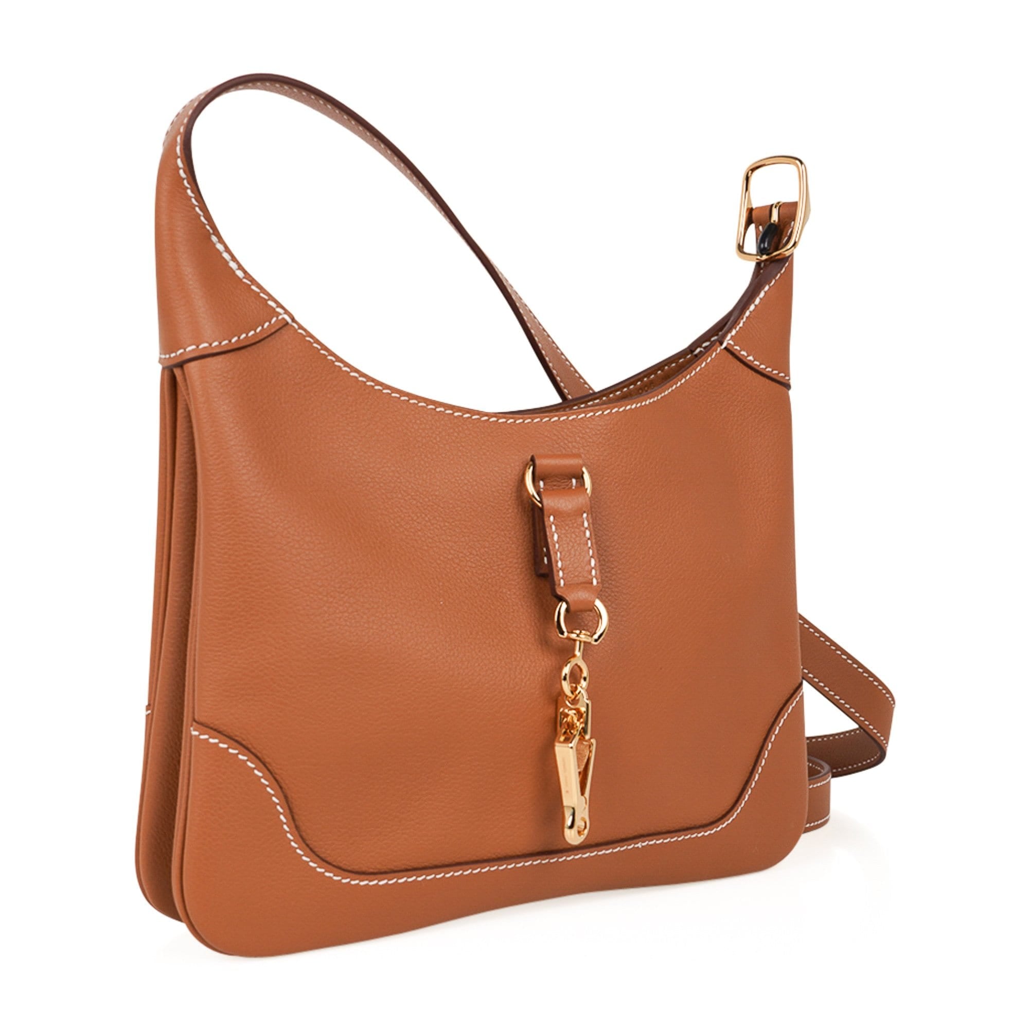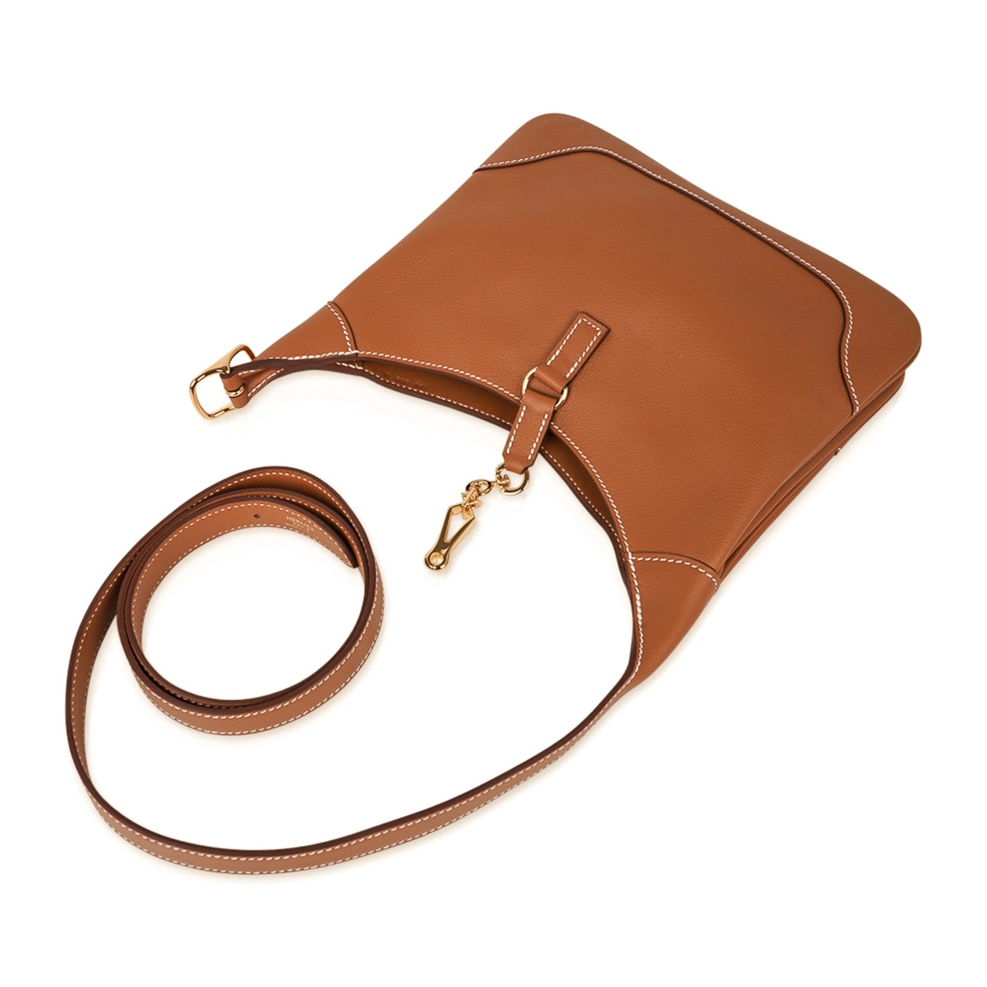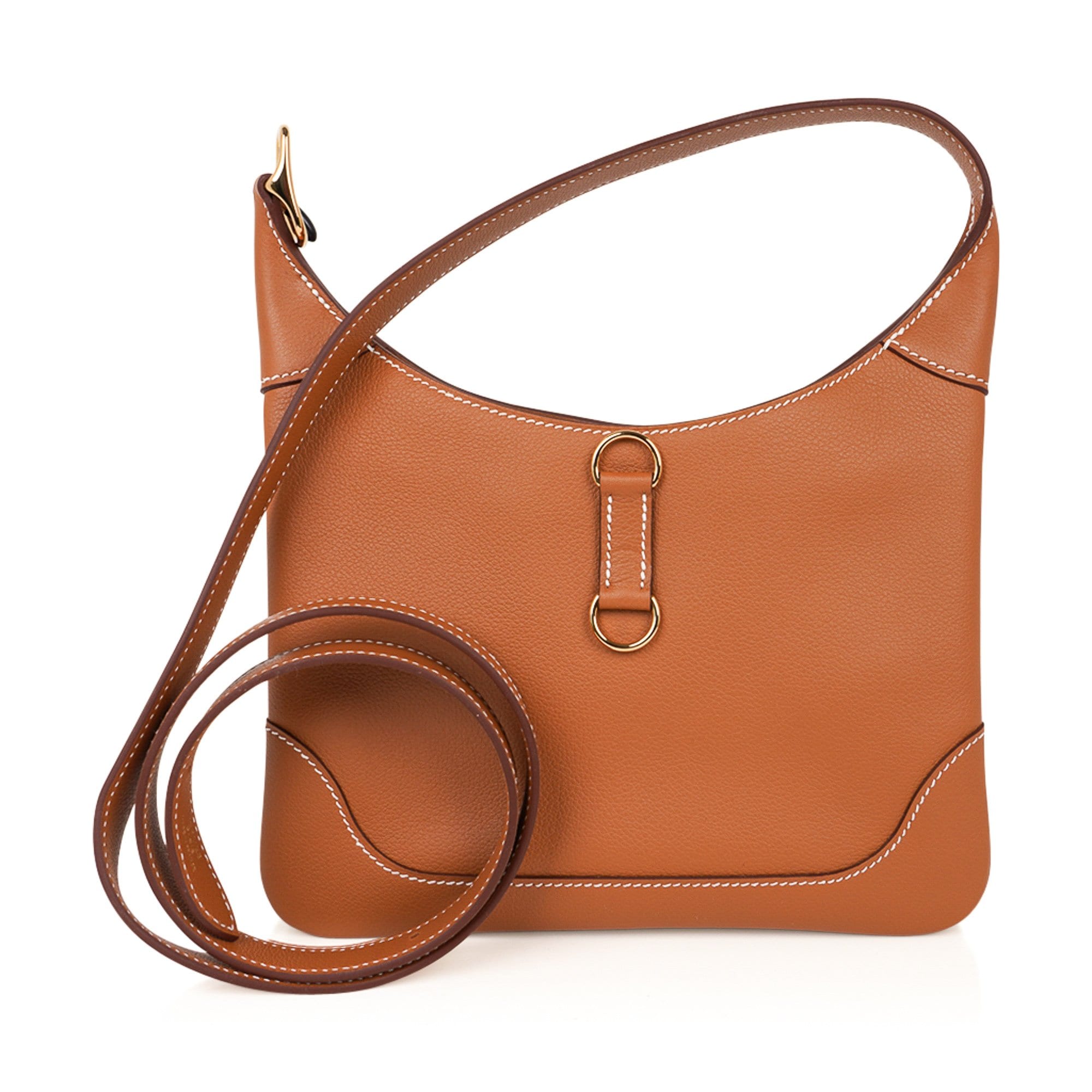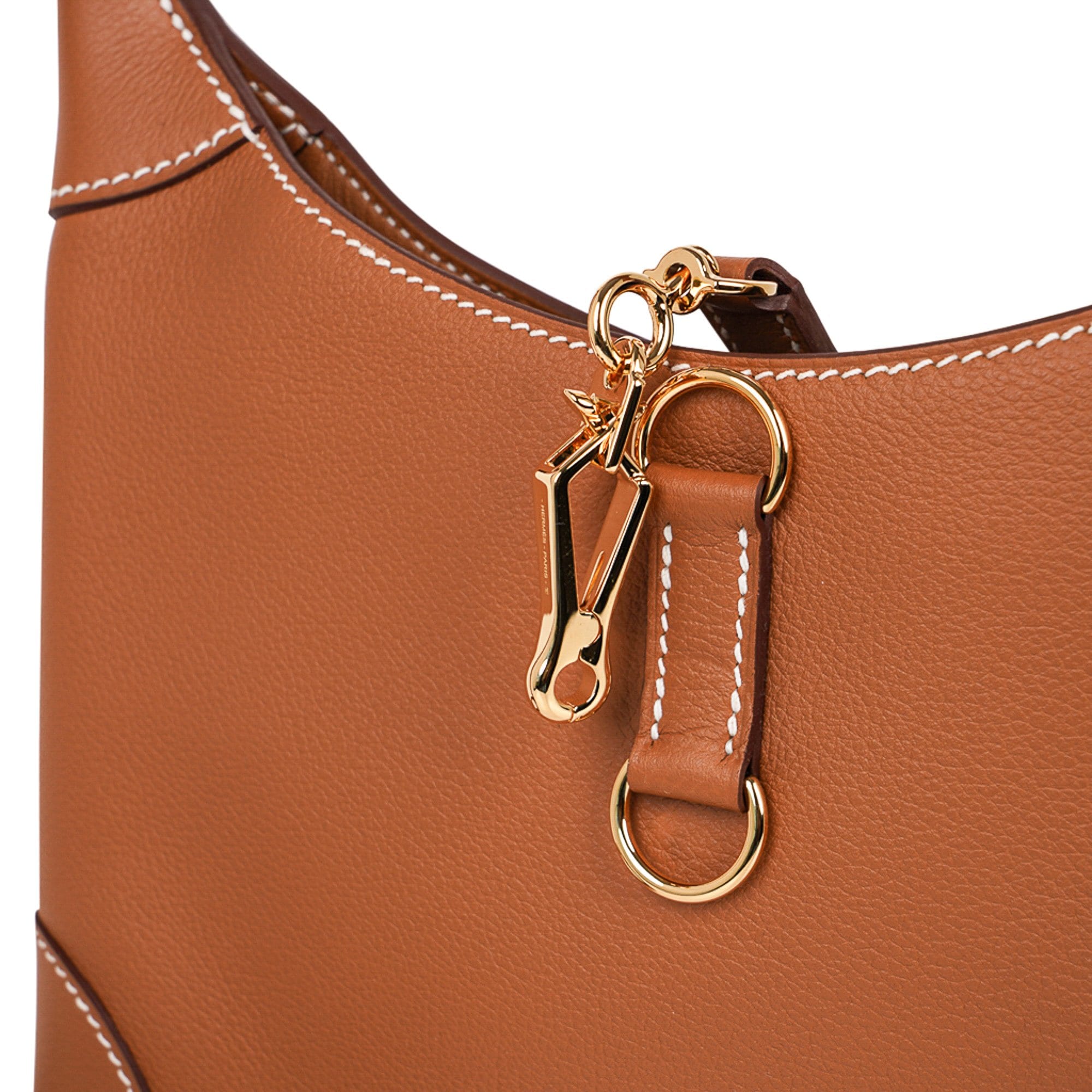 Guaranteed authentic Hermes Trim Duo 24 bag featured in Gold with signature bone topstitch.