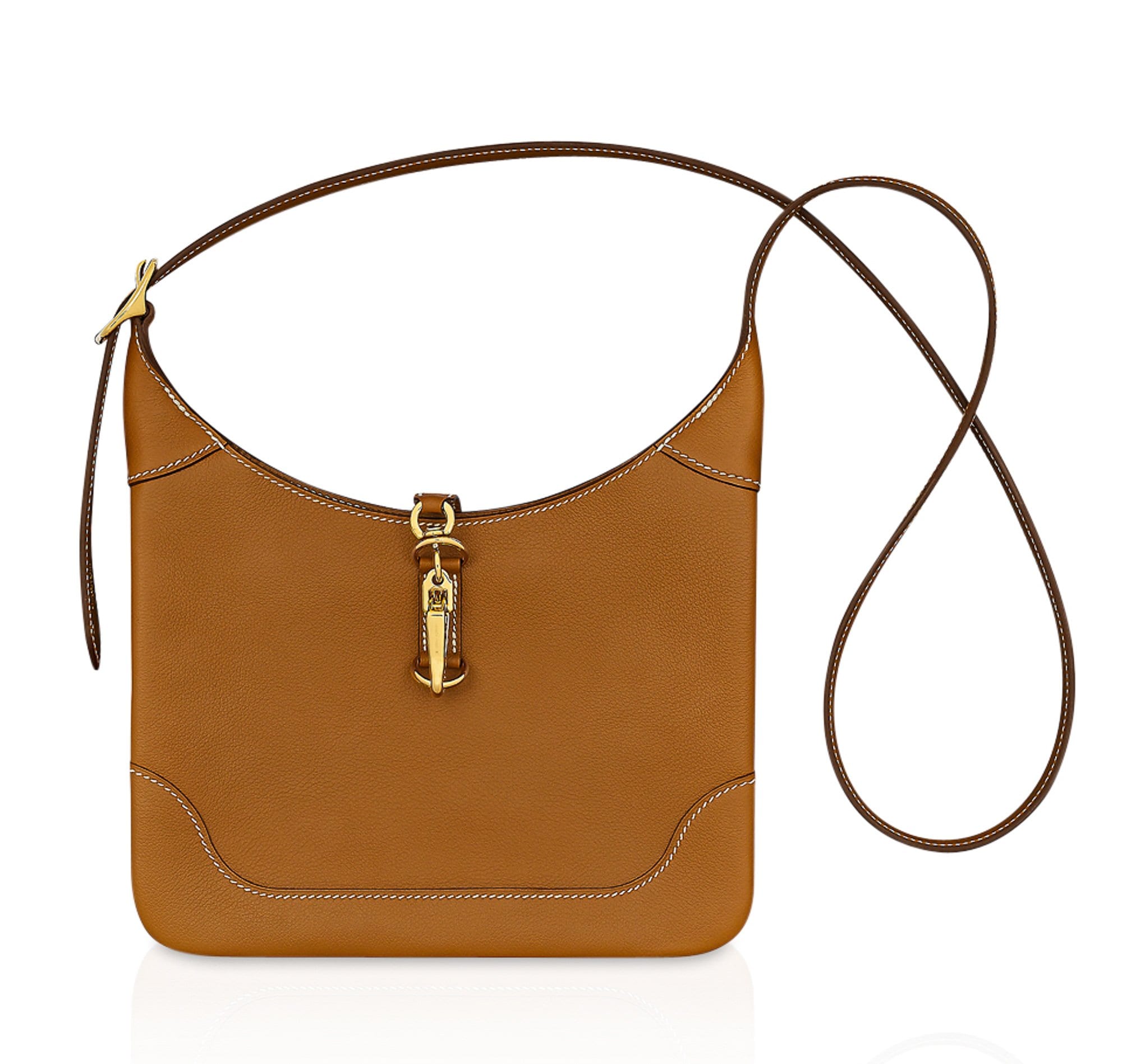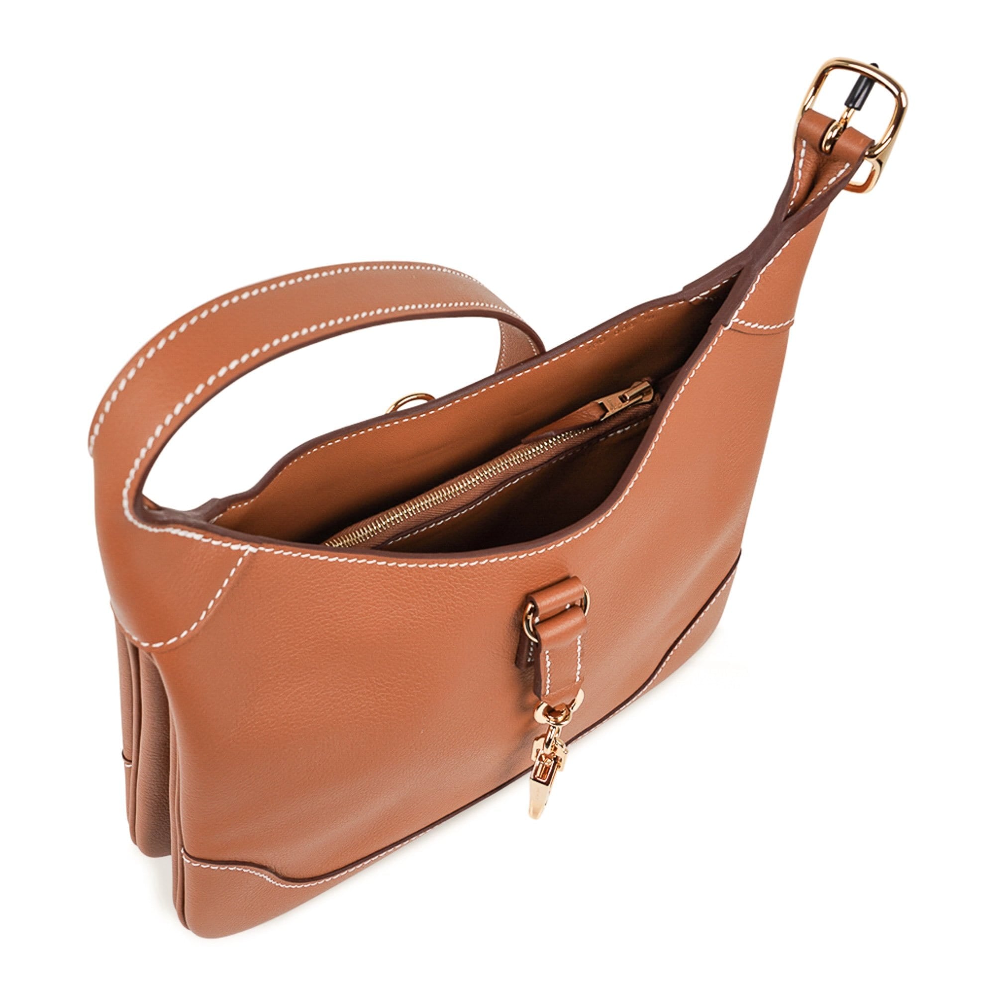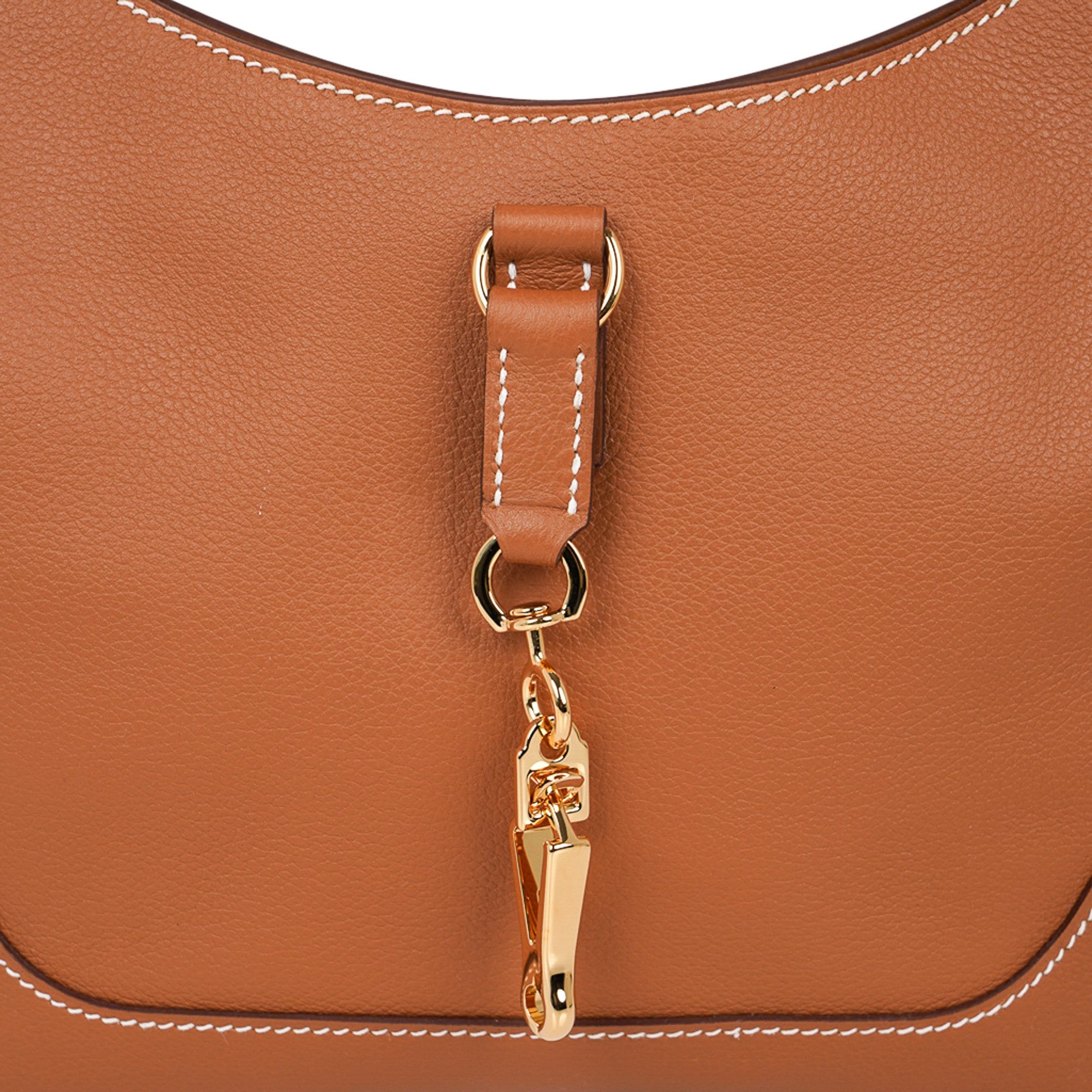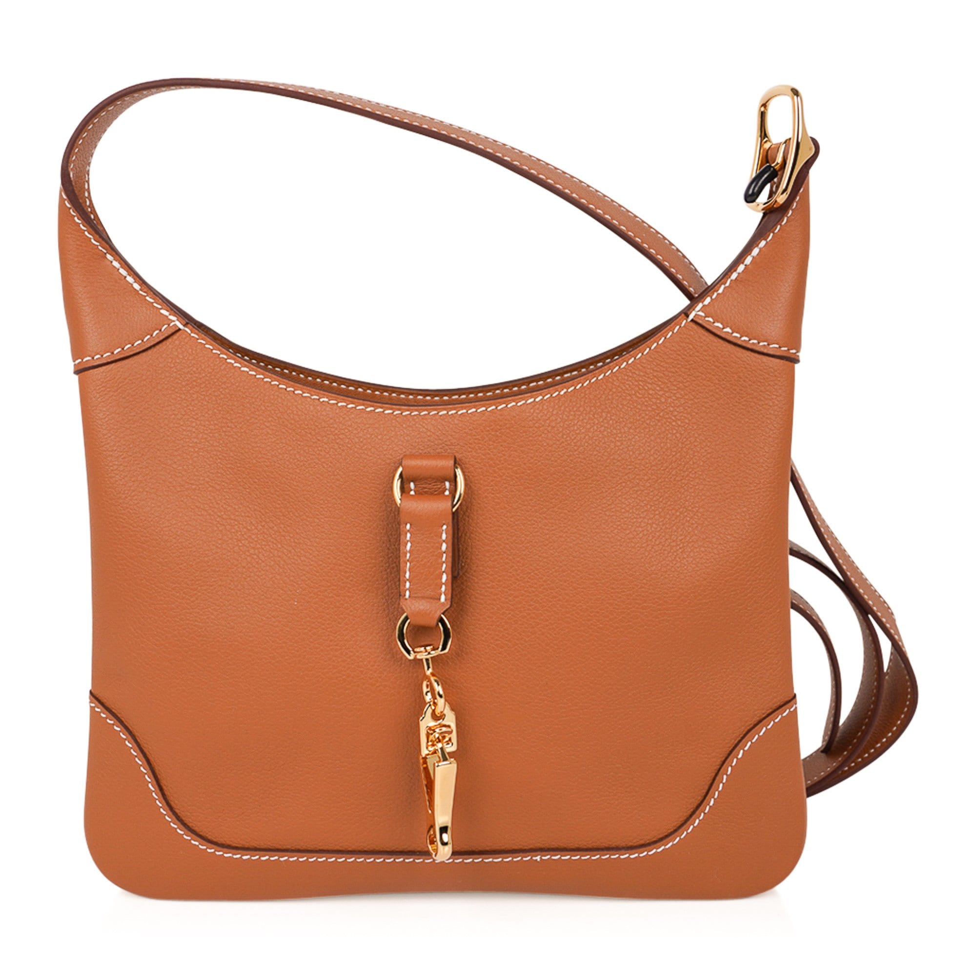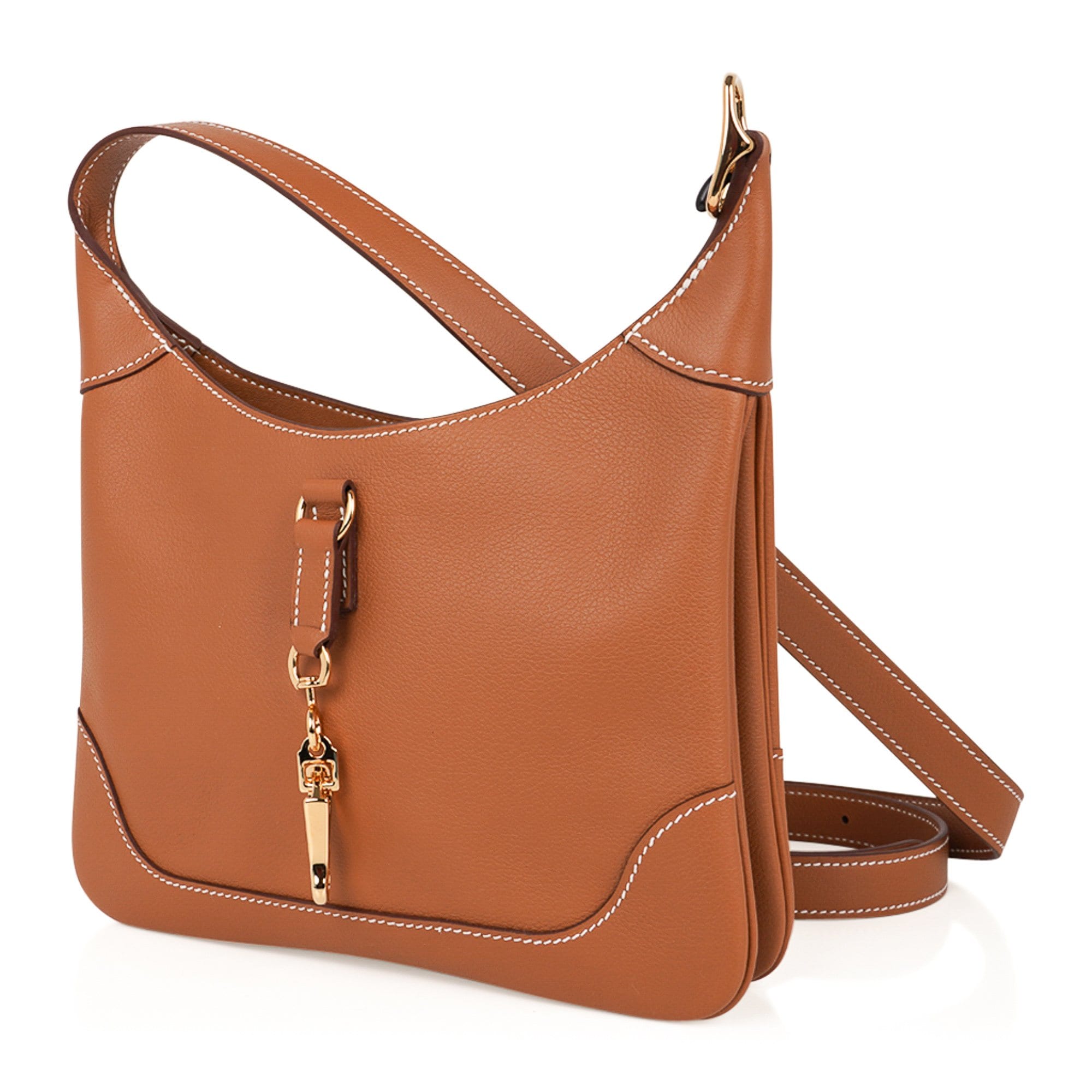 Guaranteed authentic Hermes Trim Duo 24 bag featured in Gold with signature bone topstitch.
