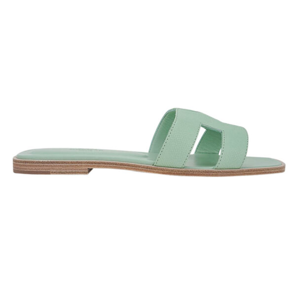 Experience elevated simplicity with the Hermès Oran Vert d’Eau Sandal, where comfort meets refined craftsmanship in every step.
