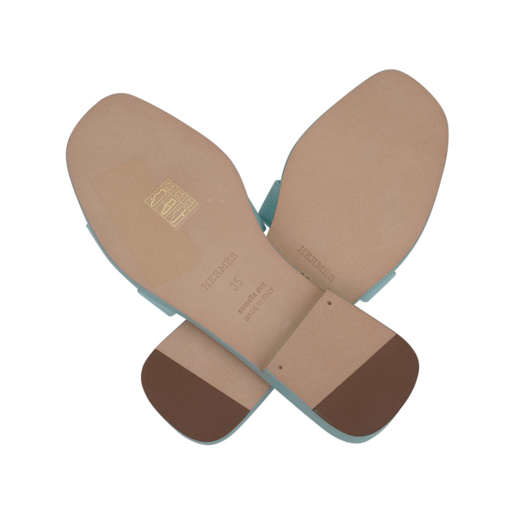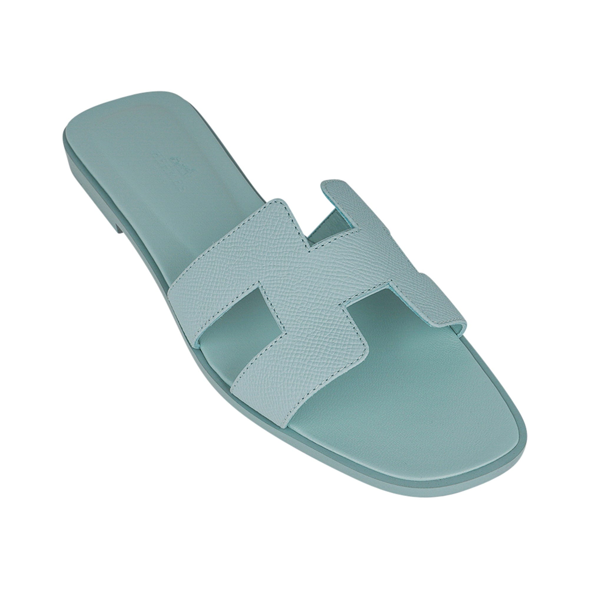 Hermes Vert Embrun Oran Sandal Epsom Leather Flat Shoes 35