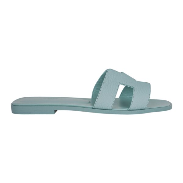The hallmark of the Oran is the H cutout across the top of the foot, instantly recognized as Hermès.