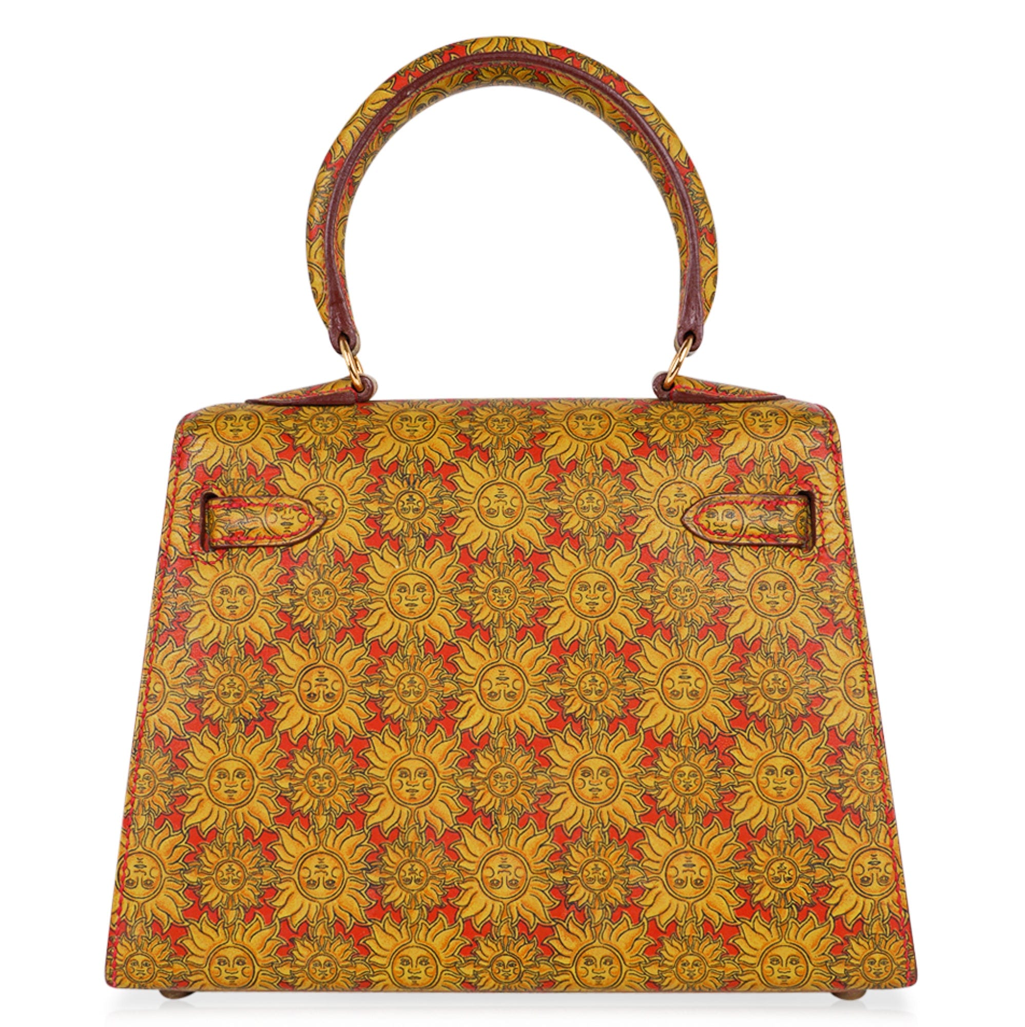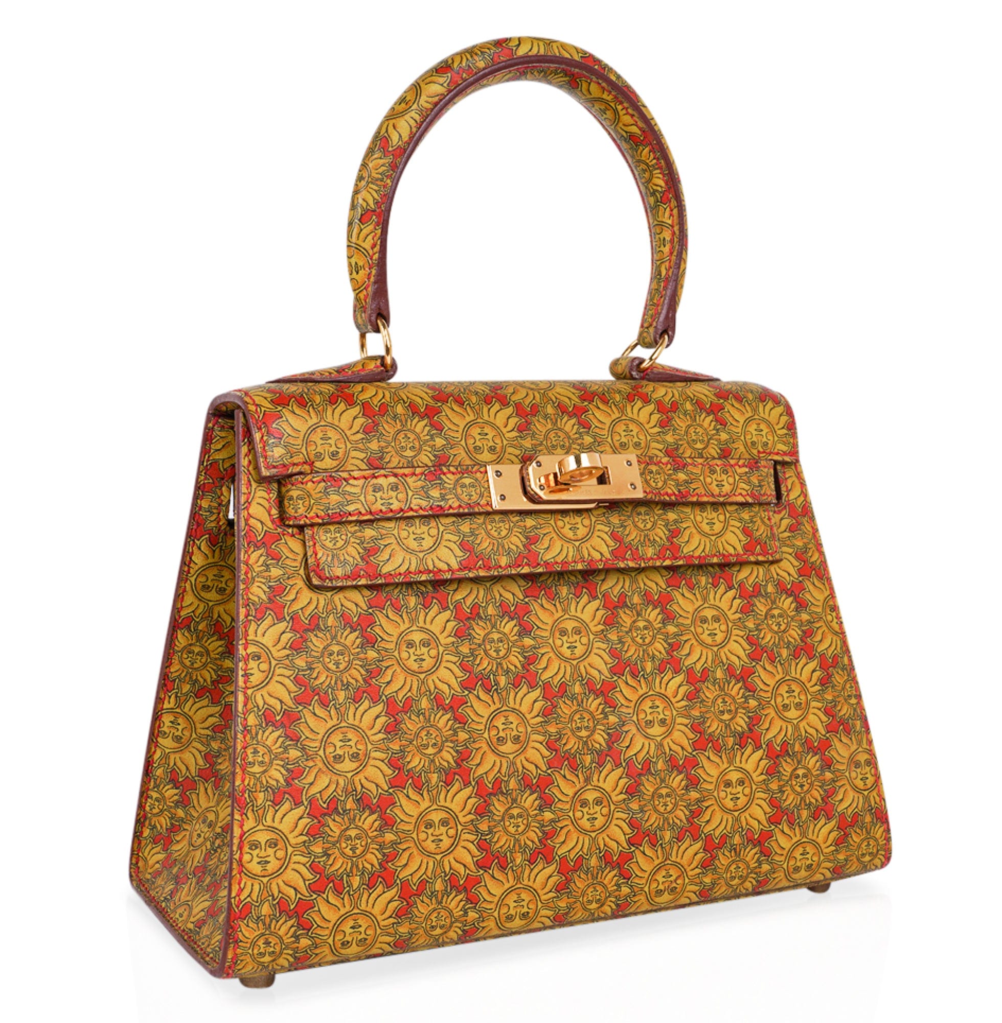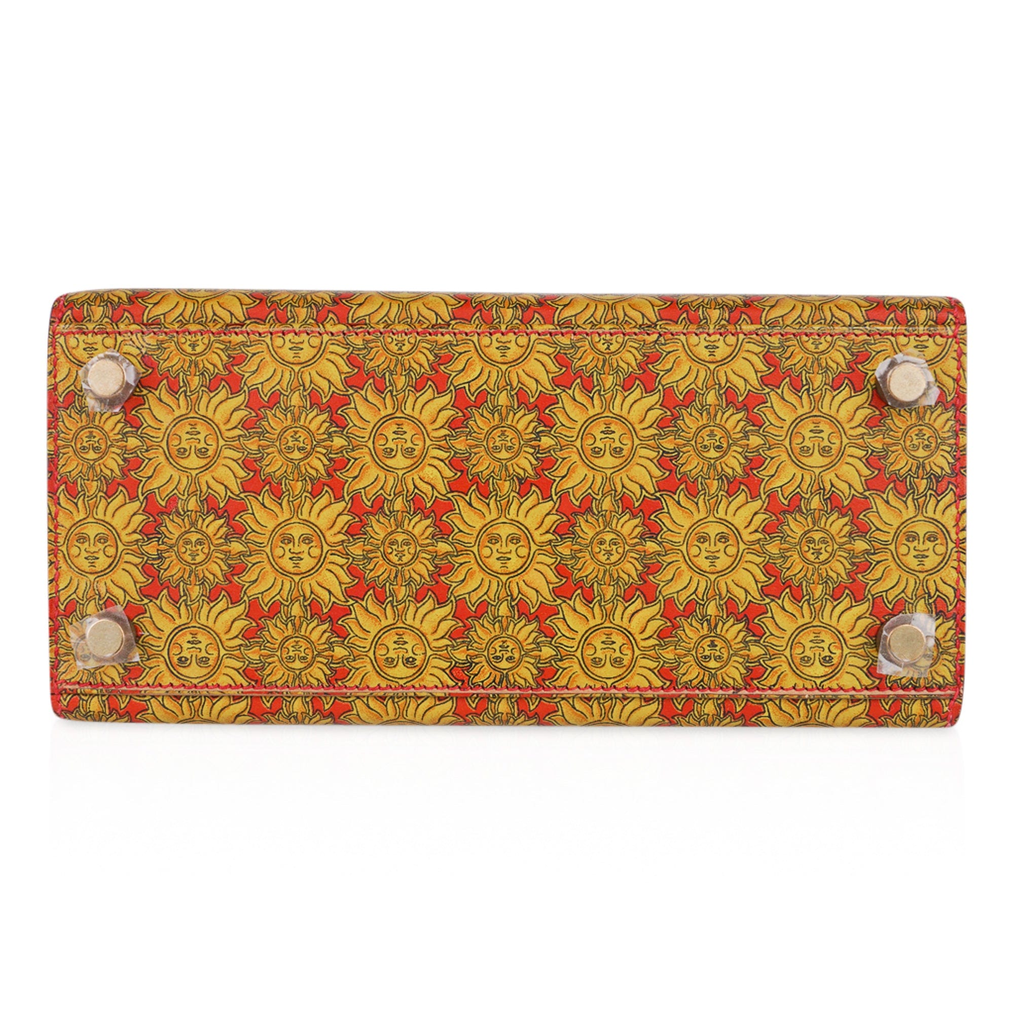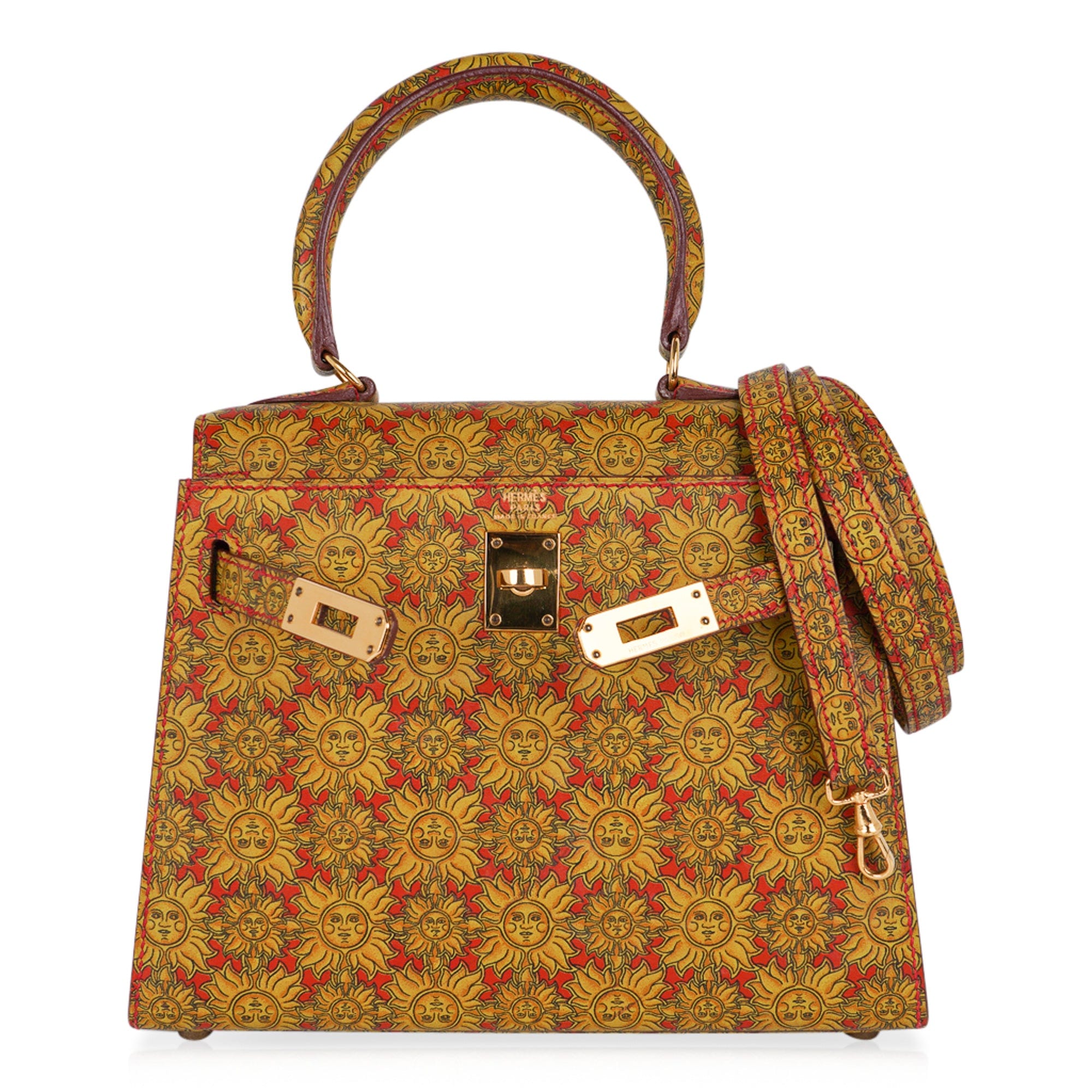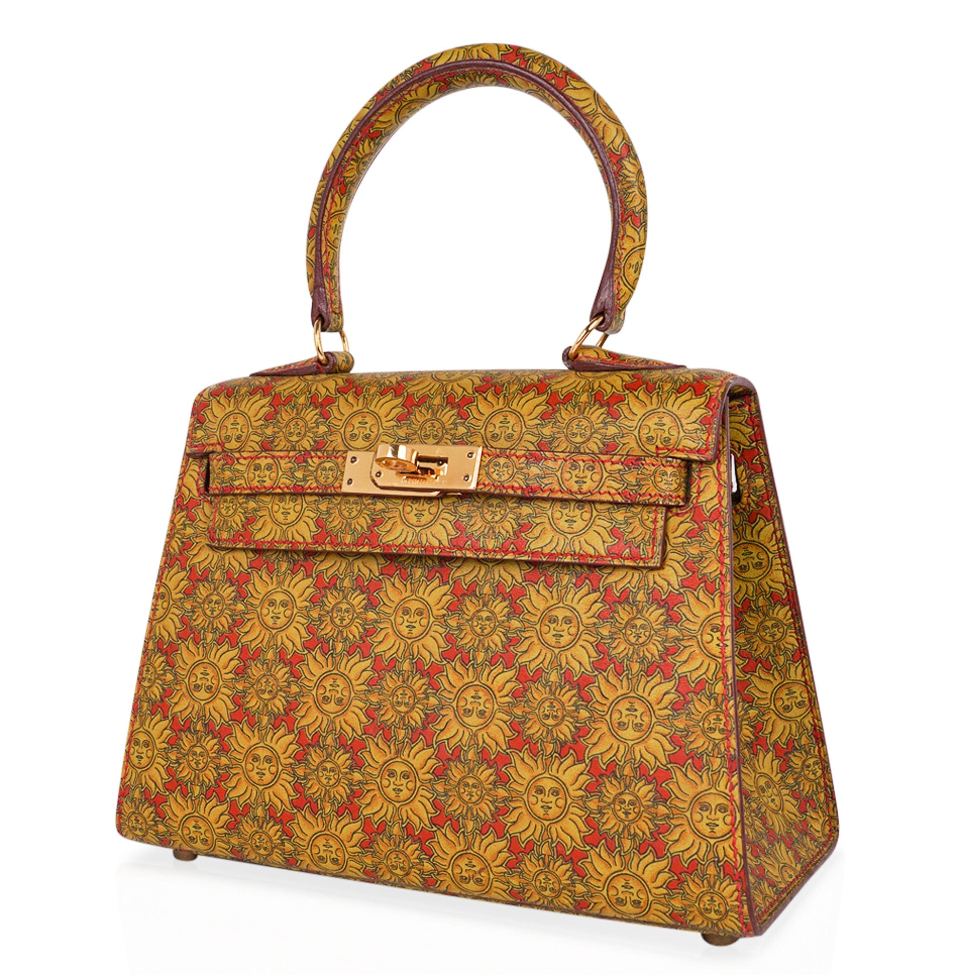 Guaranteed authentic Hermes insanely beautiful mini Vintage Hermes Kelly 20 Sellier featured in rare Soleil print Box Calf leather.