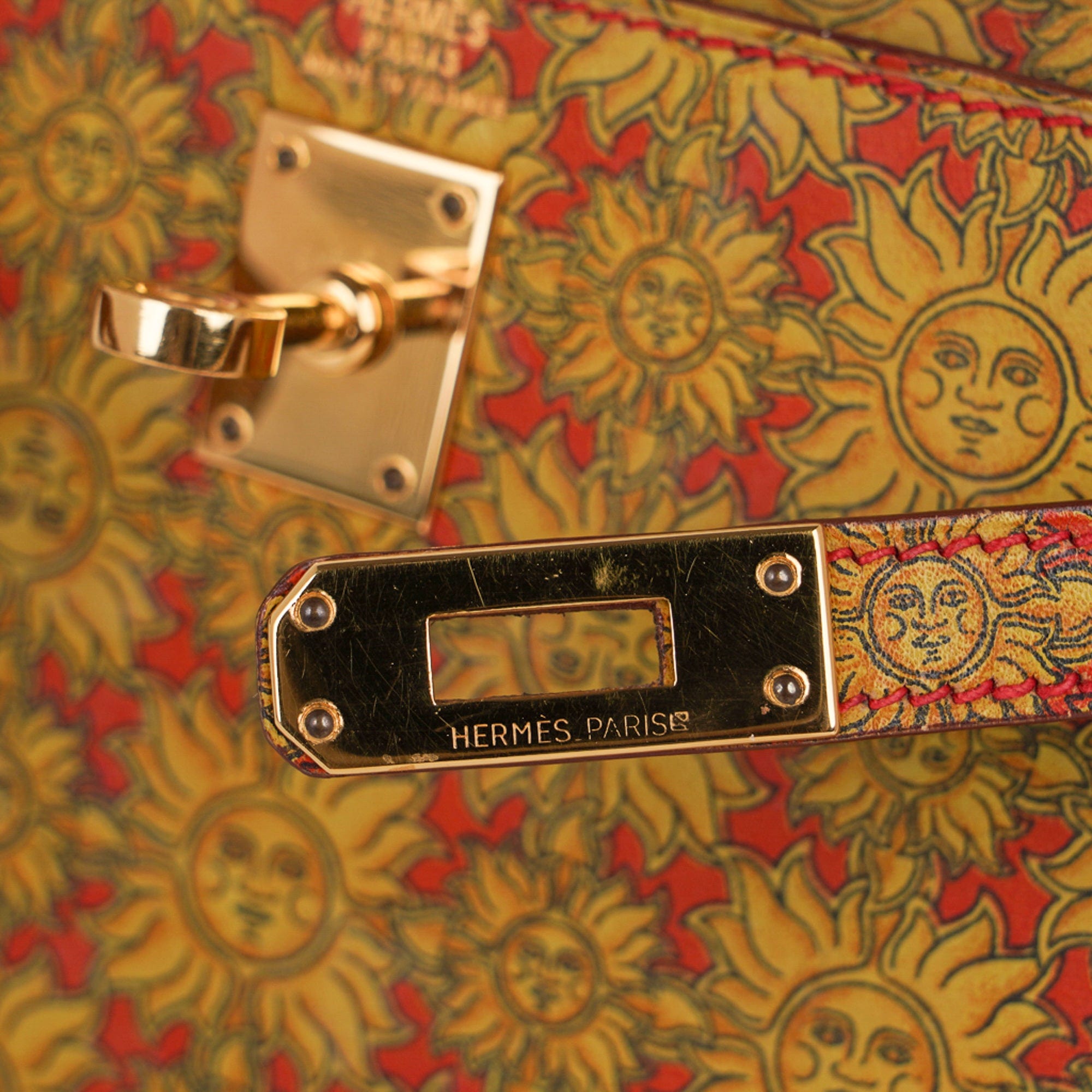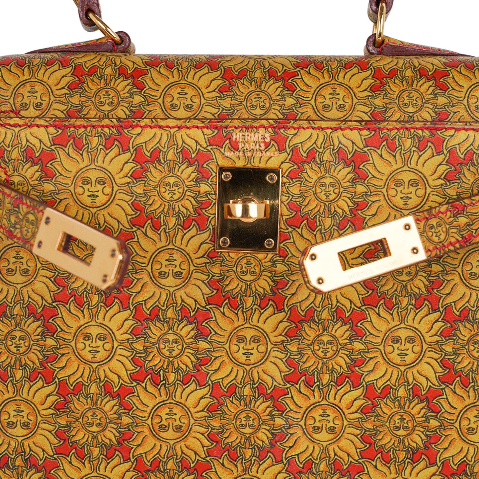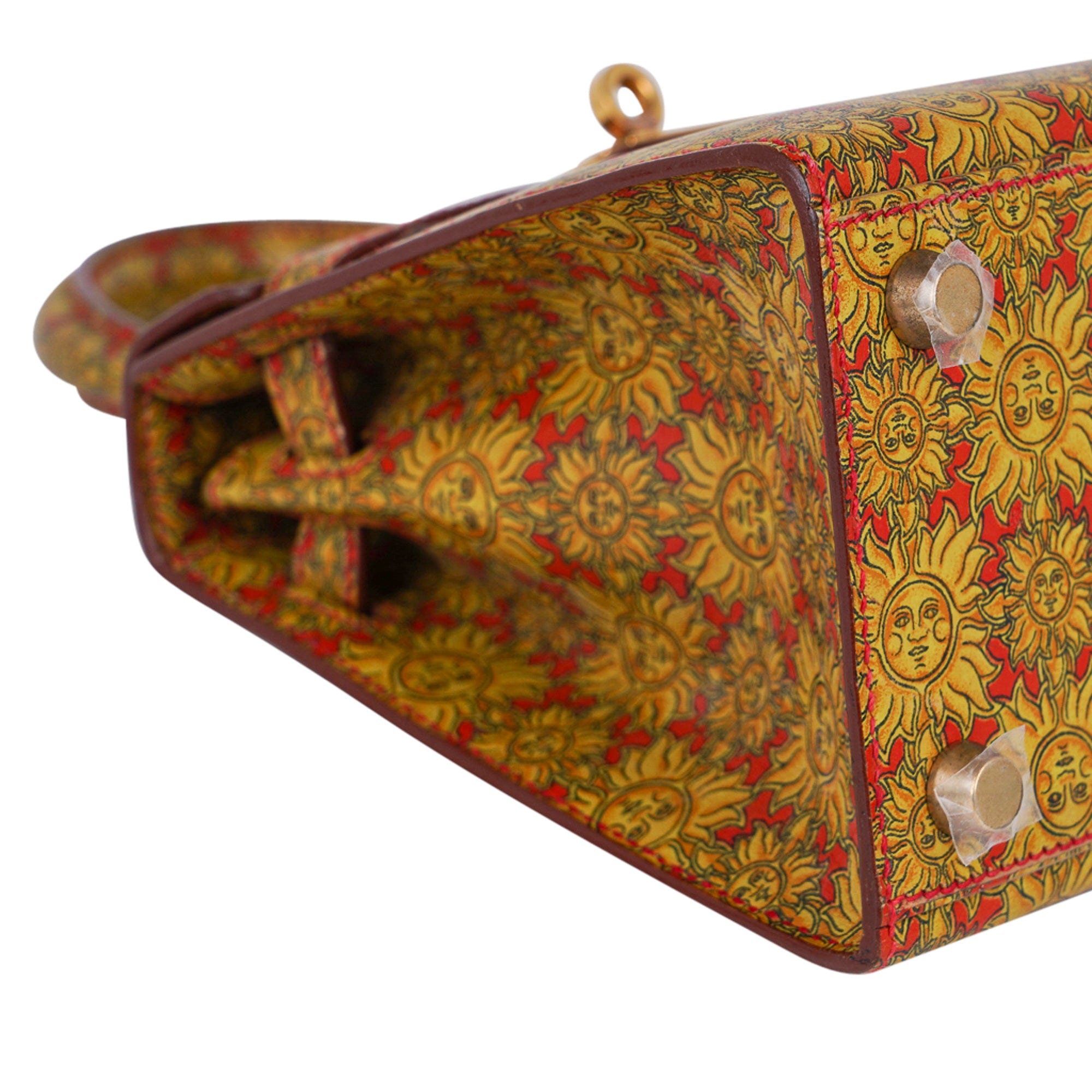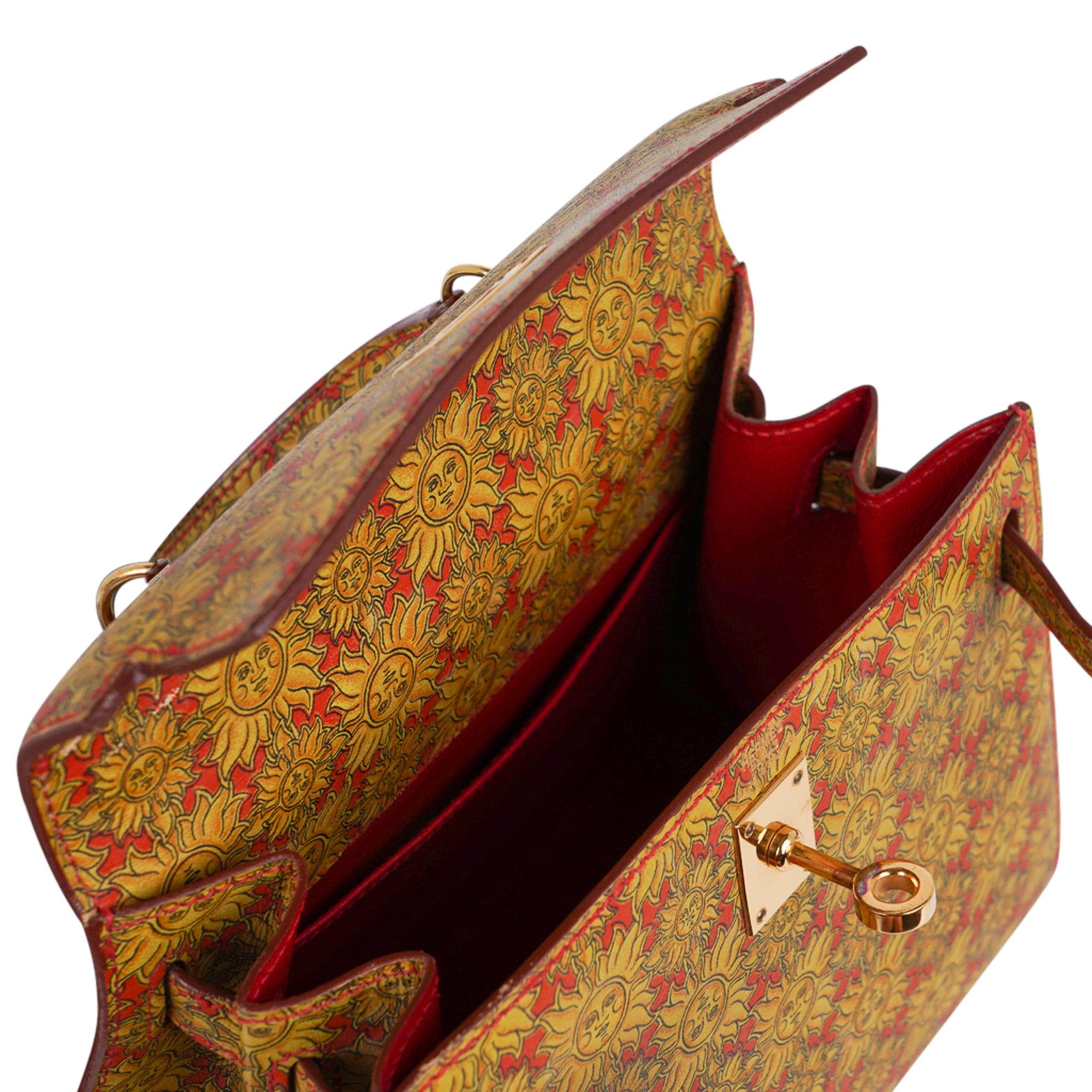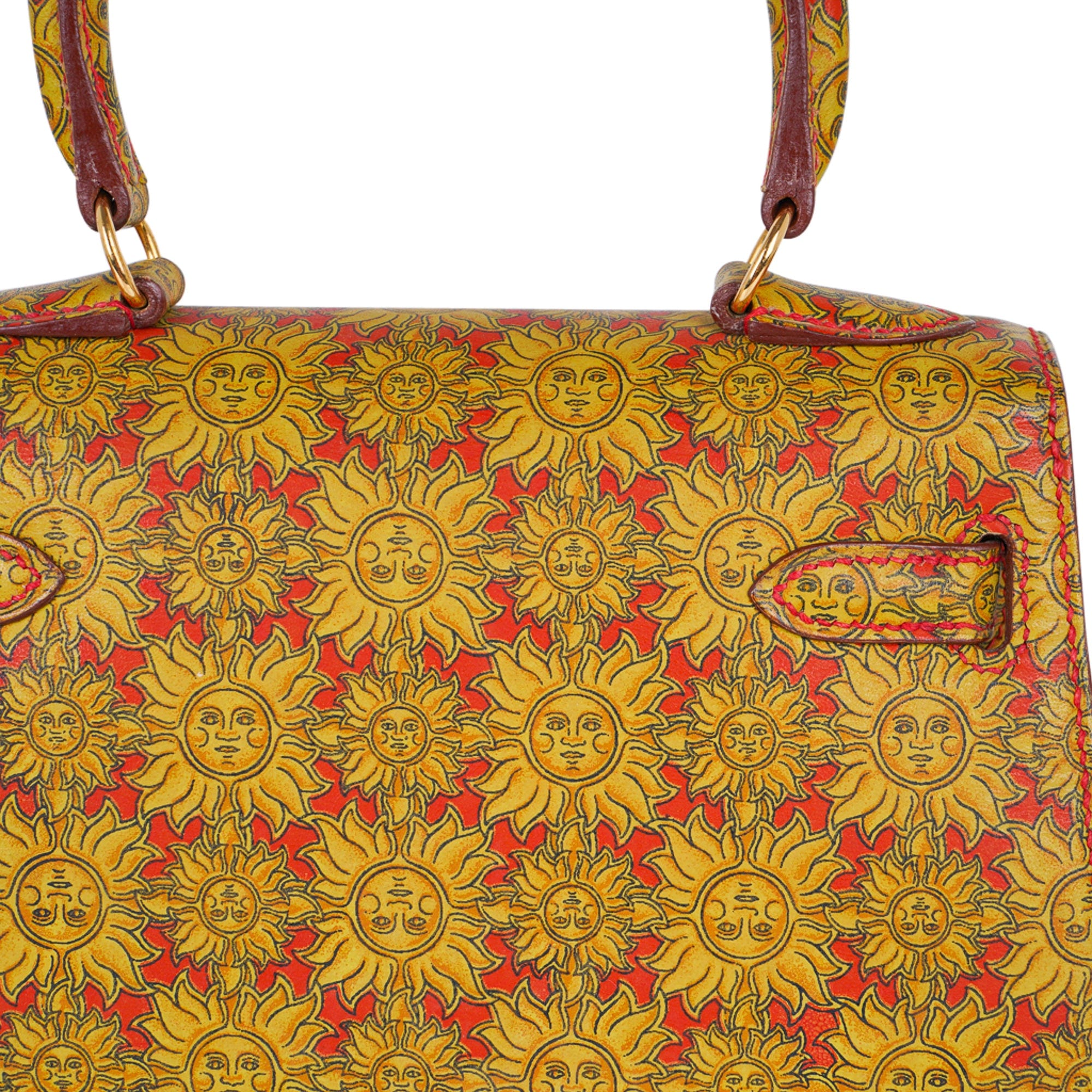 Guaranteed authentic Hermes insanely beautiful mini Vintage Hermes Kelly 20 Sellier featured in rare Soleil print Box Calf leather.