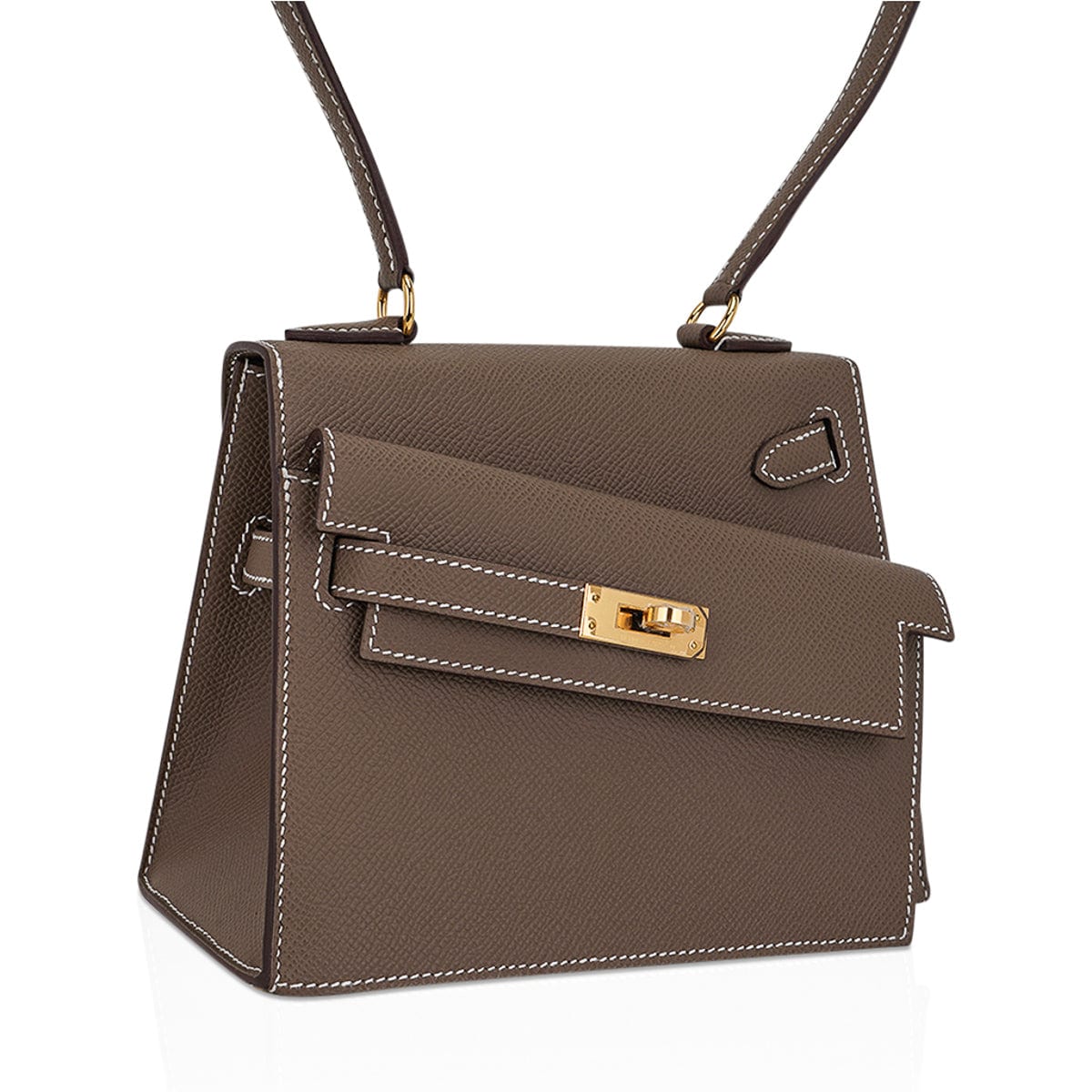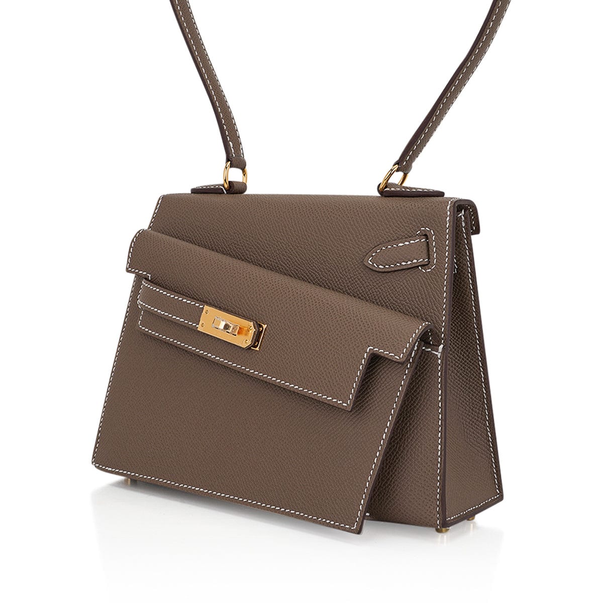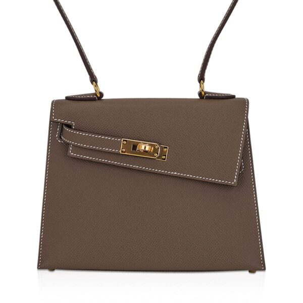 Guaranteed authentic very Limited Edition Hermes Kelly 20 Sellier En Desordre featured in Etoupe.