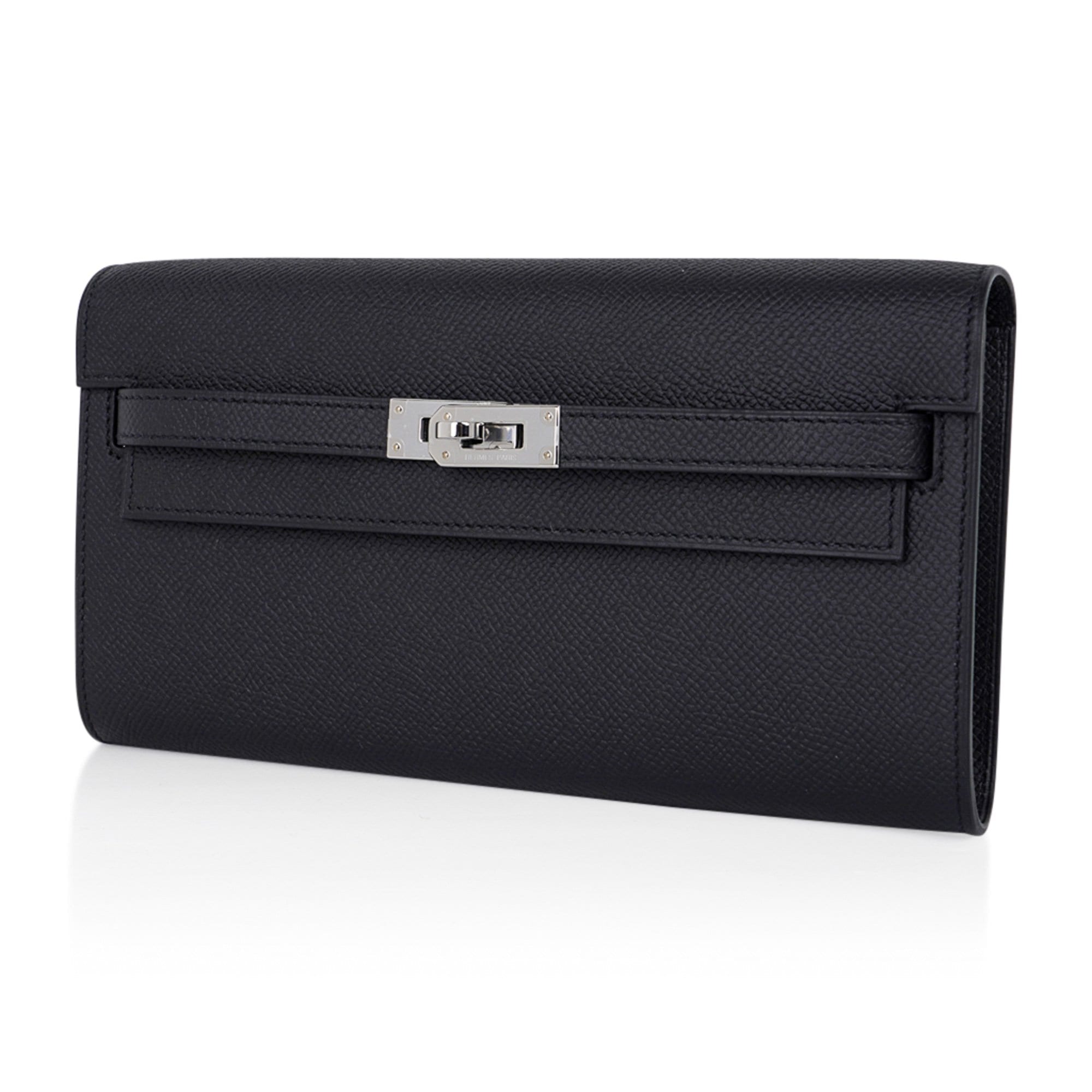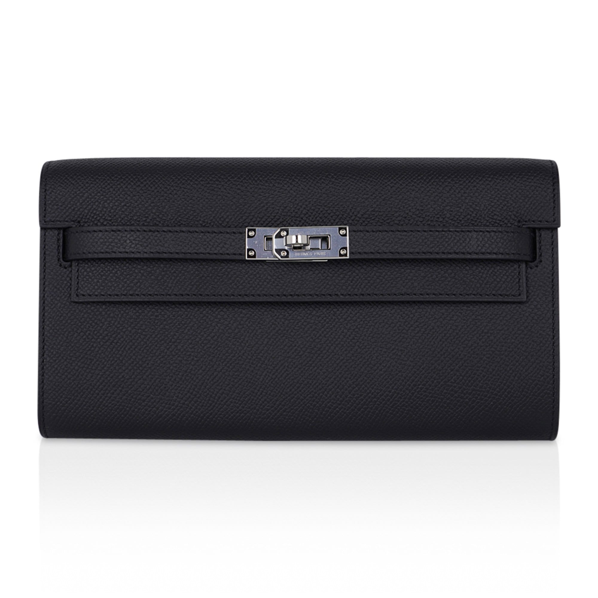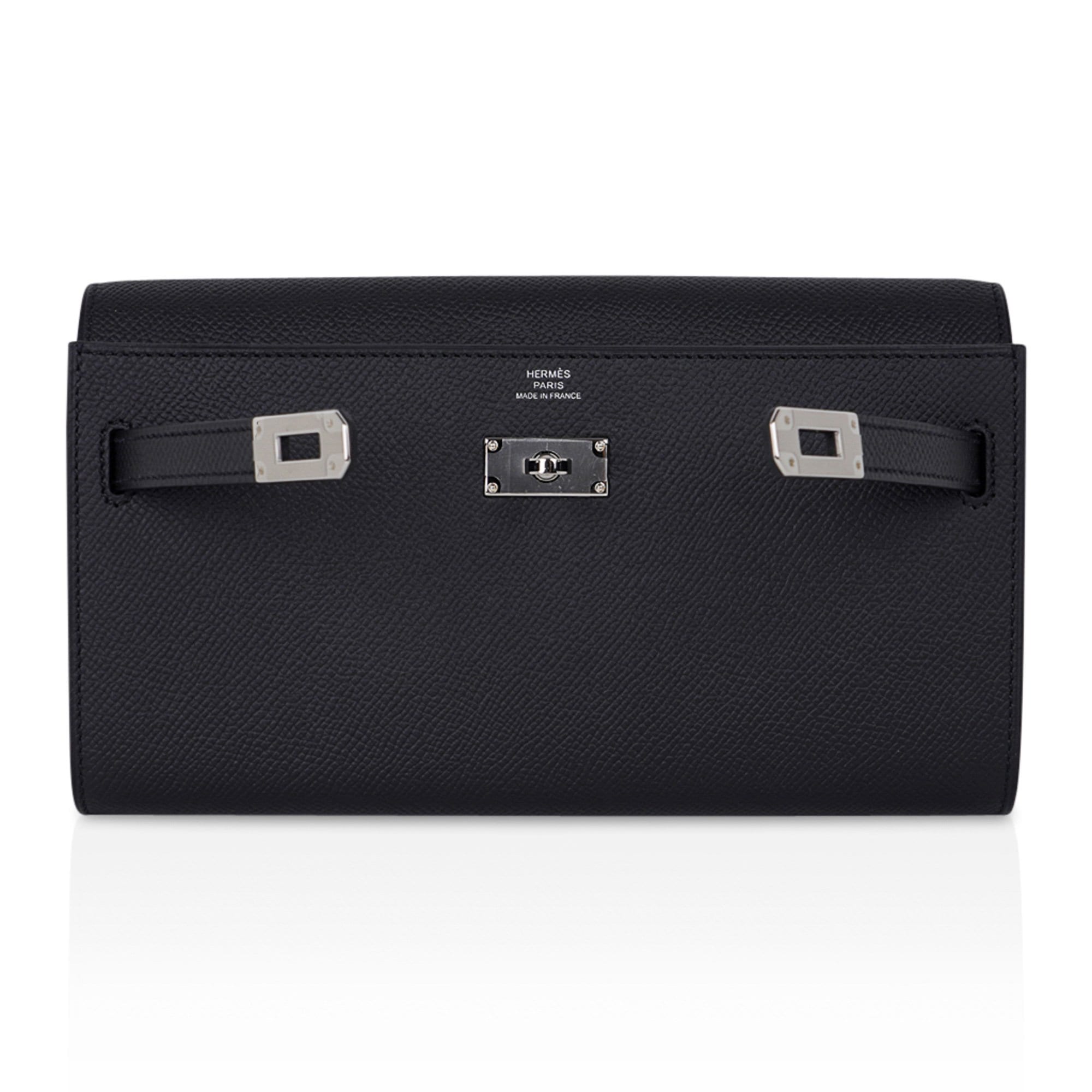 Guaranteed authentic Hermes Kelly Classique To Go wallet featured in classic Black.