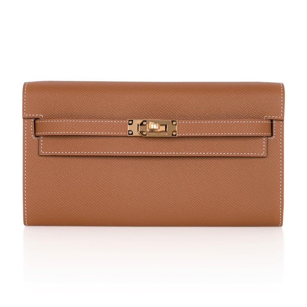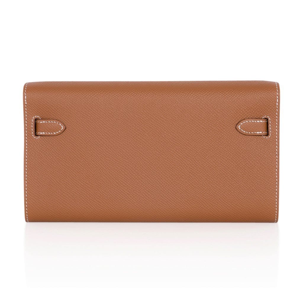 Guaranteed authentic Hermes Kelly Classique To Go wallet featured in Gold Epsom leather.