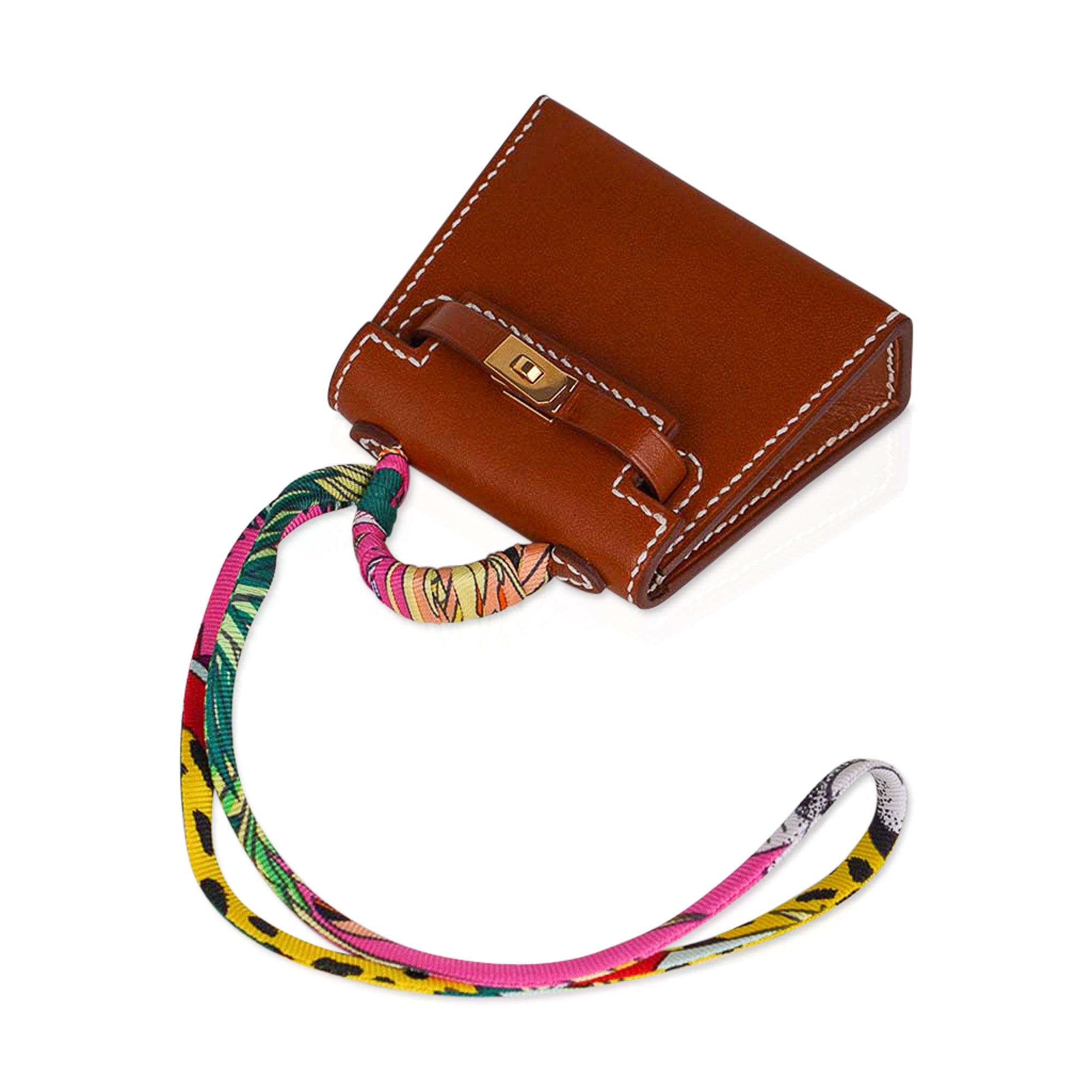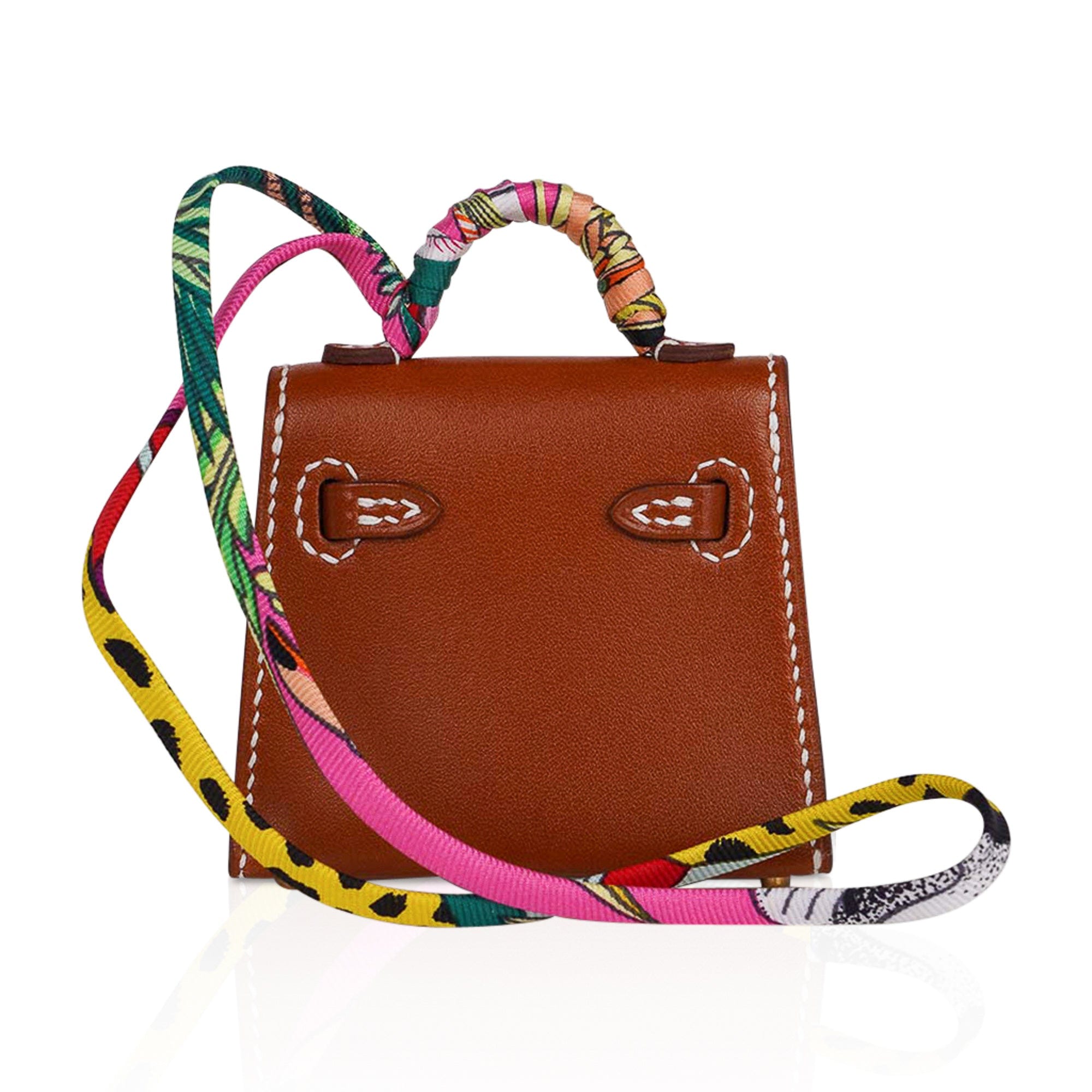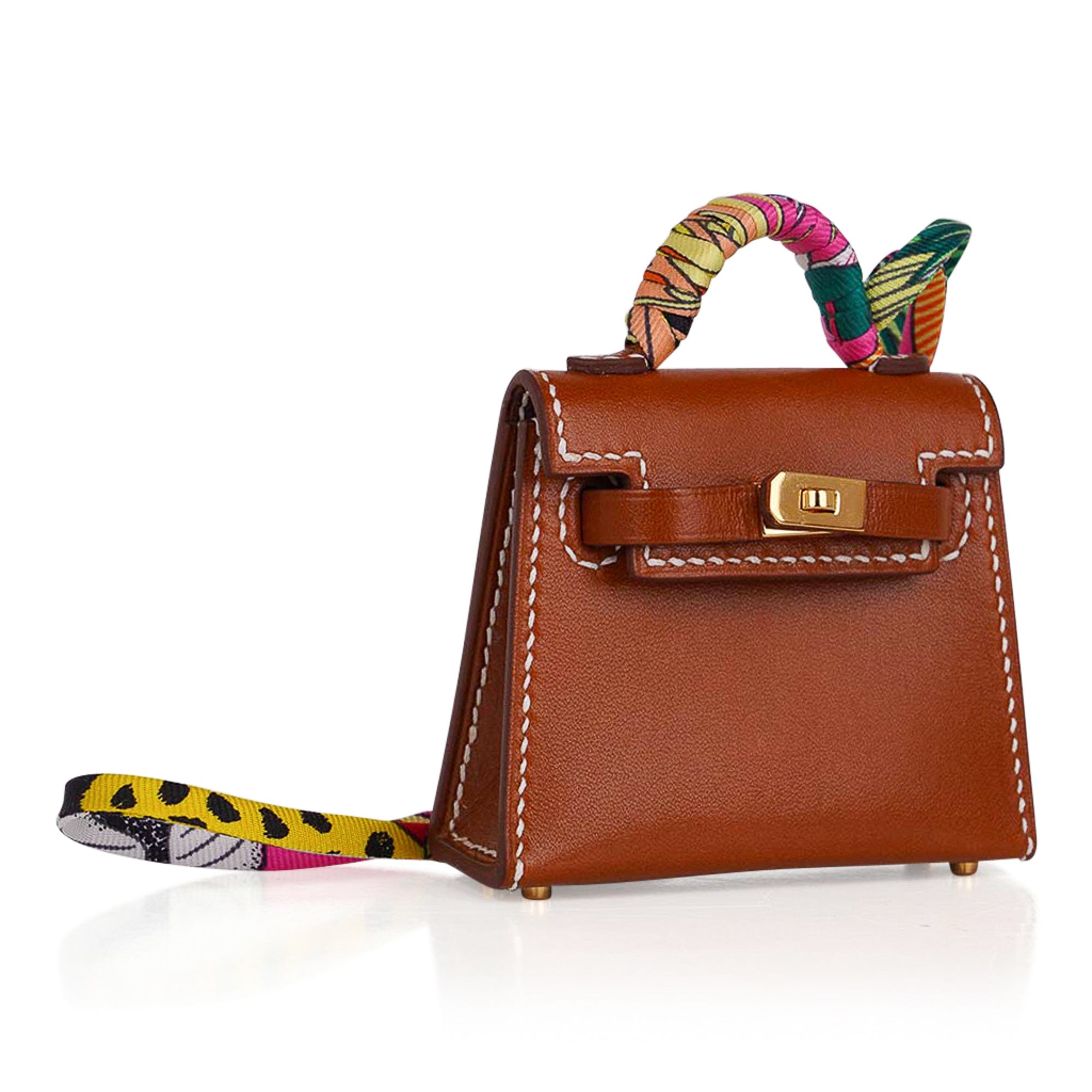 Guaranteed authentic very rare limited edition Hermes Kelly Twilly Bag Charm features a miniature Kelly in Gold with signature bone topstitch.